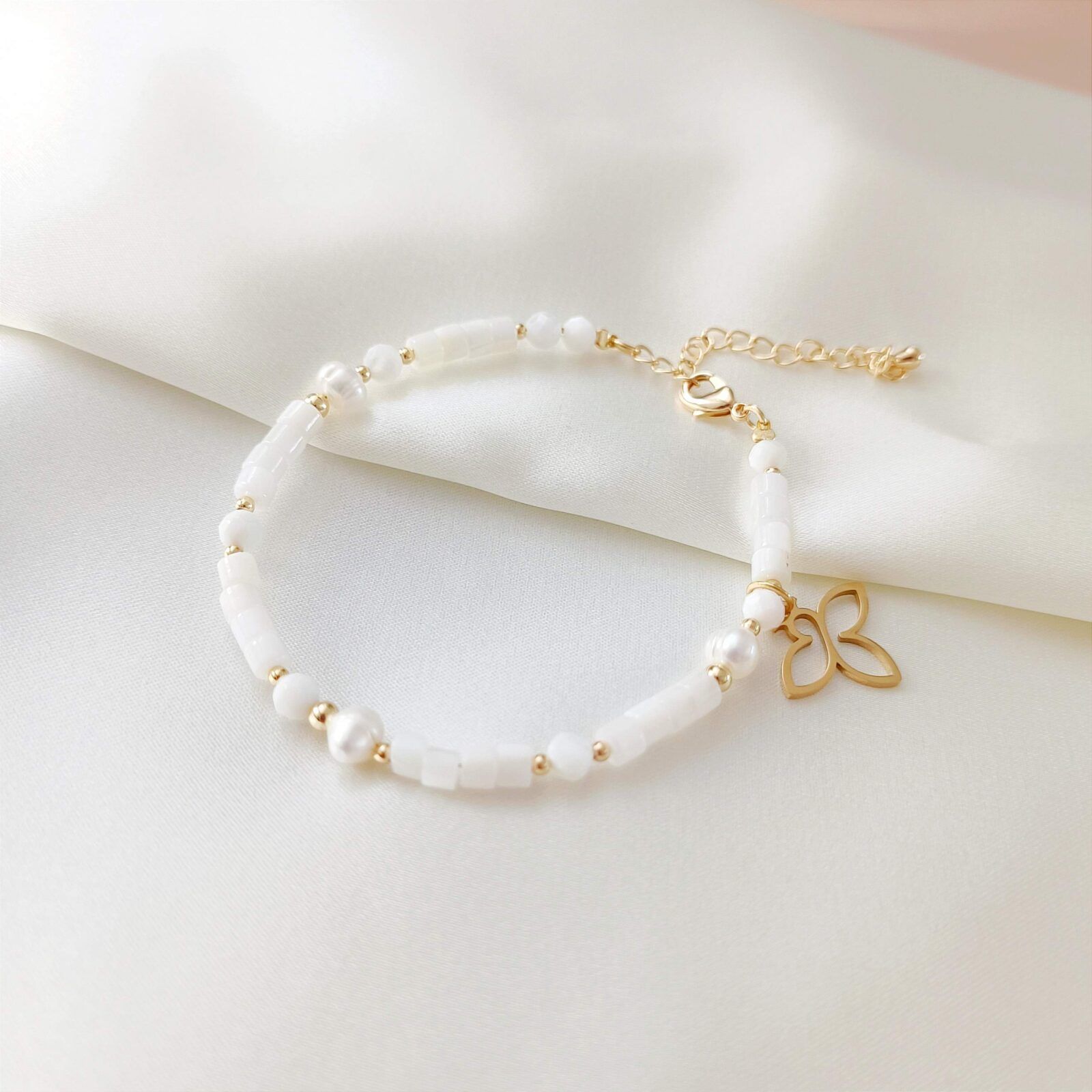 Bransoletka AURELIA to delikatna kompozycja bieli i złota, która sprawdzi się na wiele różnych okazji.
