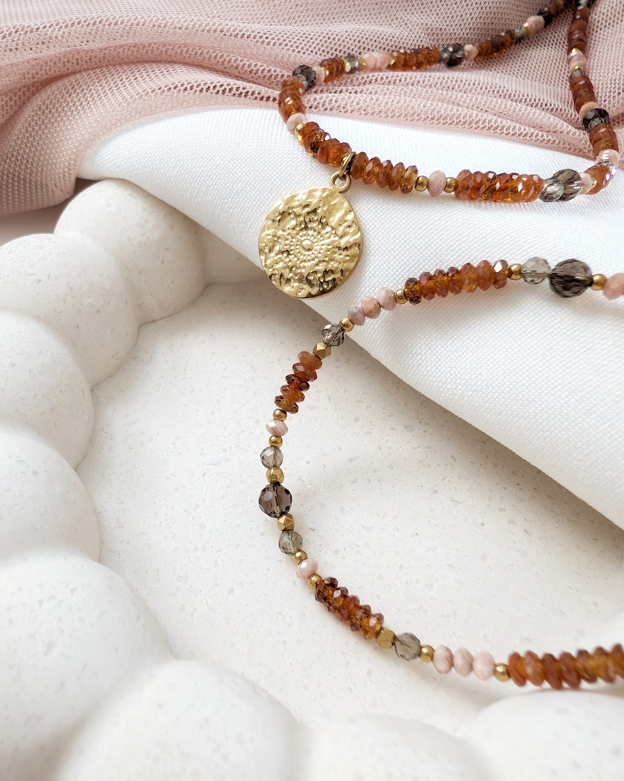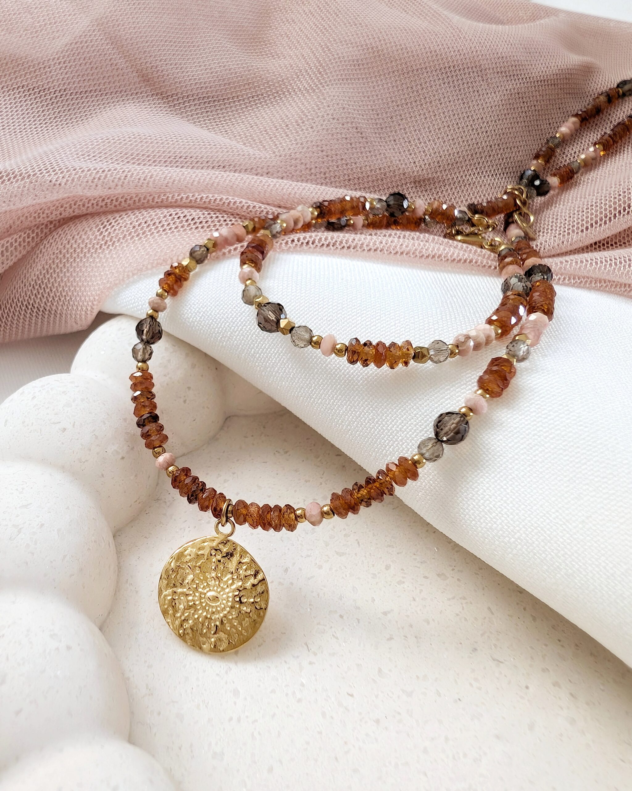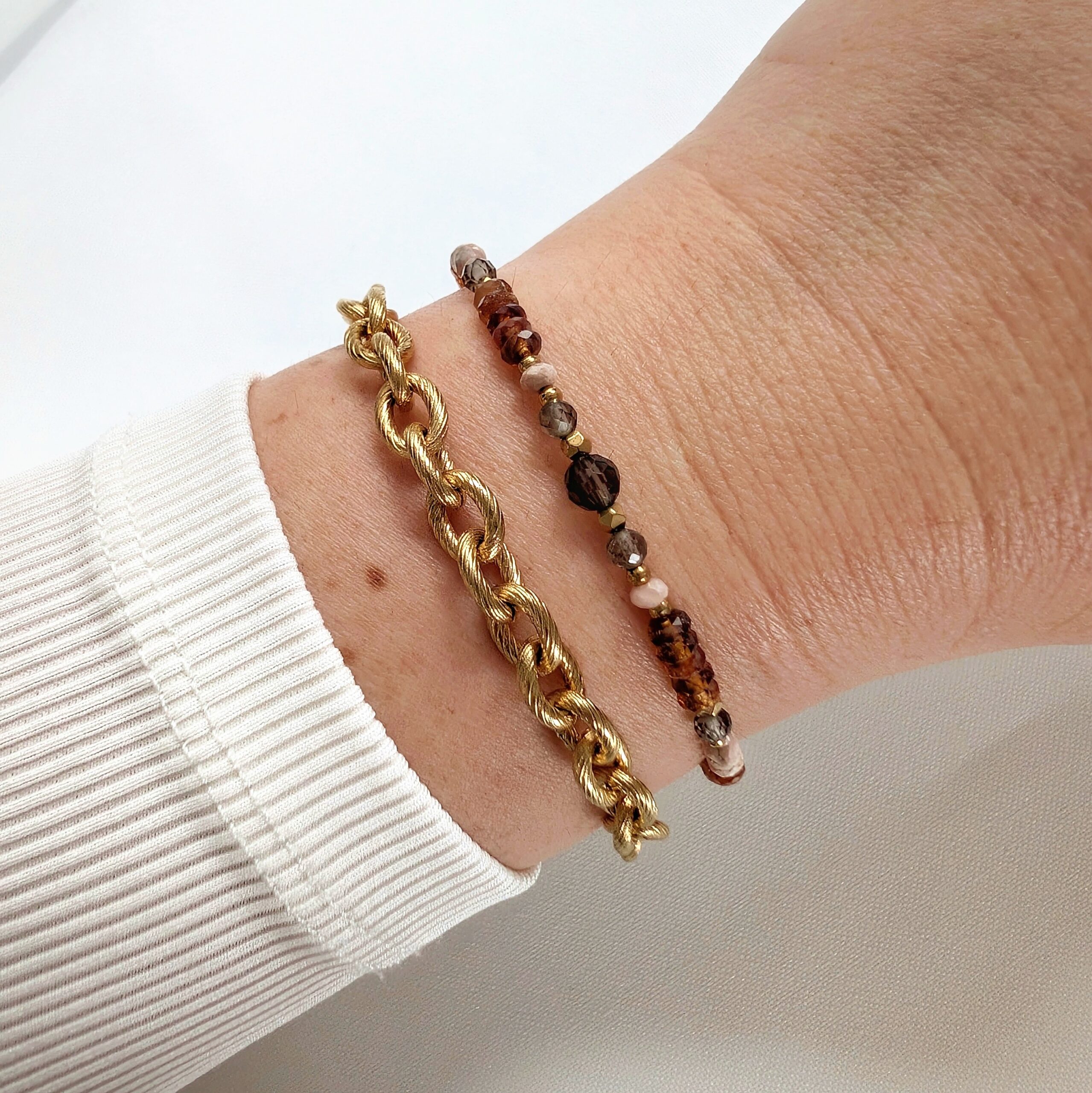 Bransoletka CINNAMON to połączenie kamieni, które równocześnie wzmacniają, otulają spokojem i inspirują do działania w zgodzie ze sobą.