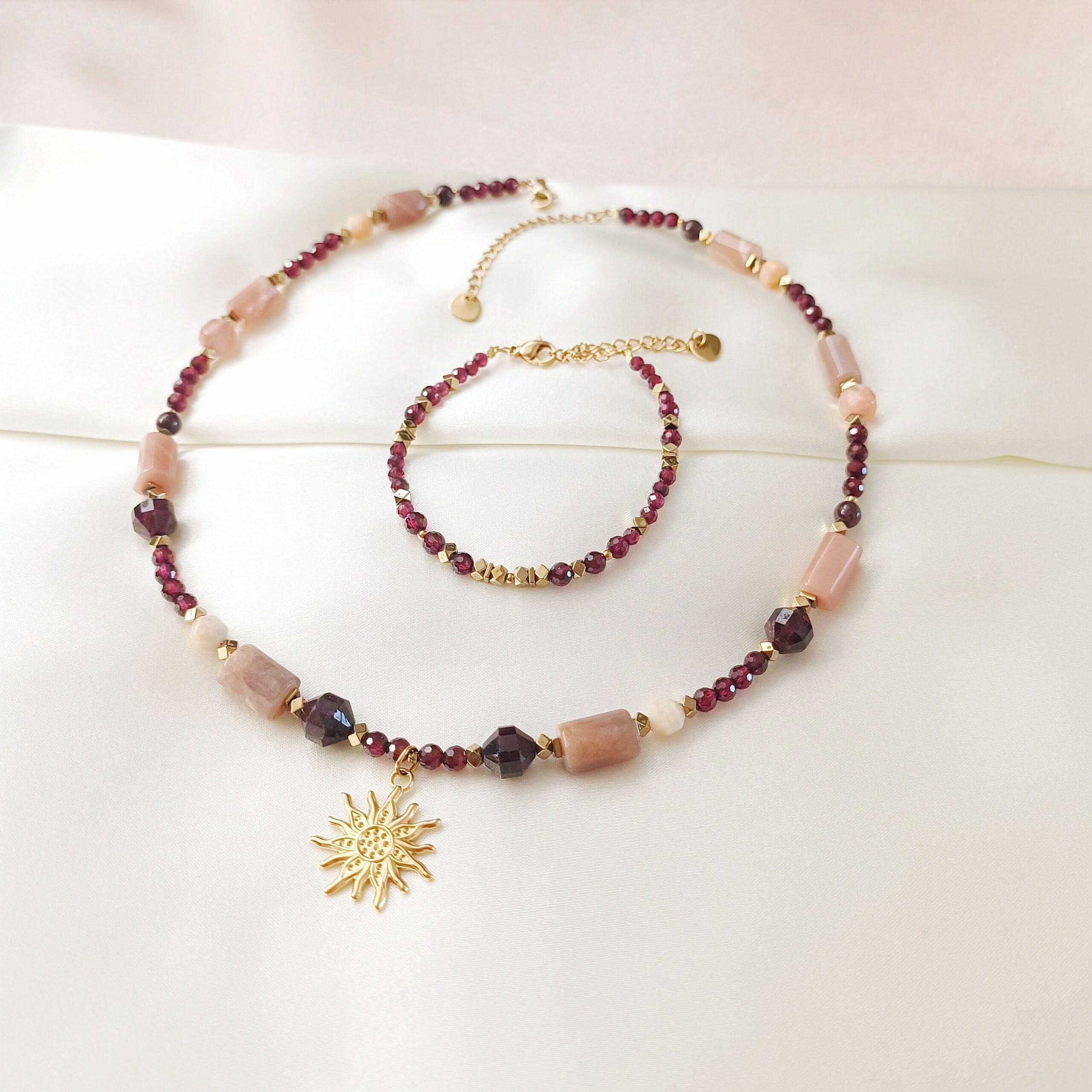Granat – symbol pasji, życiowej energii i wytrwałości. Pomaga w pokonywaniu przeszkód, dodaje odwagi i motywacji. Wspiera rozwój osobisty i wzmacnia poczucie własnej wartości.