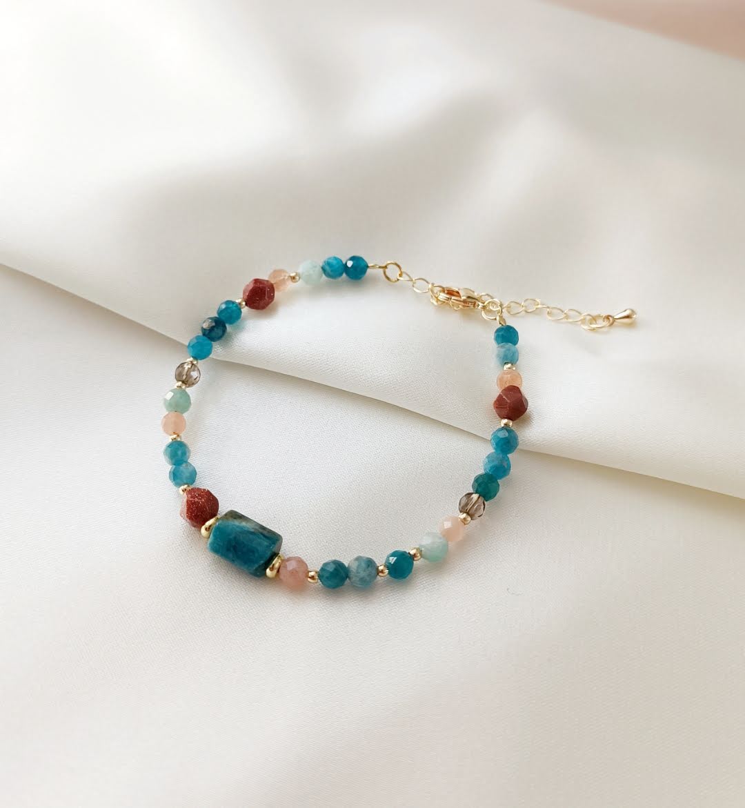 Apatyt. Kamień o intensywnym, morskim kolorze, który znany jest ze swoich właściwości inspirujących i motywujących. Apatyt pomaga w zwiększeniu kreatywności i intelektualnych zdolności, a także wspiera rozwój duchowy.
