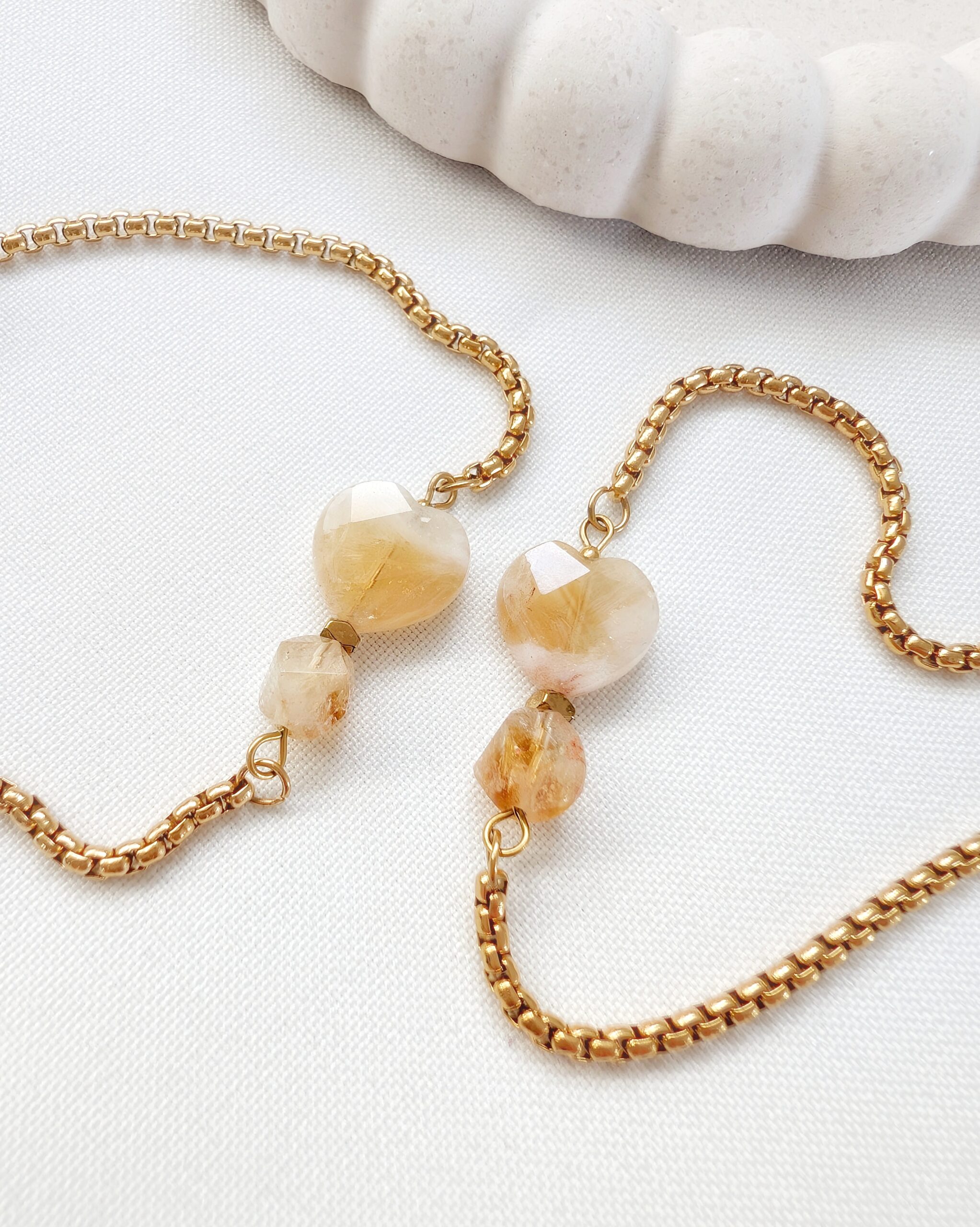 Kamień naturalny cytryn w kształcie serca i ciętej kulki.