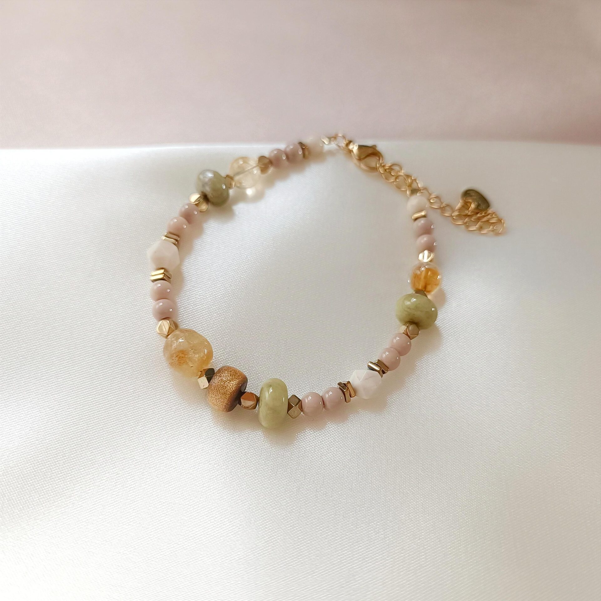 Każda bransoletka jest ręcznie wykonana, co sprawia, że każdy egzemplarz jest unikalny. Połączenie morskiego korala z ziemistym oliwinem i złocistym cytrynem tworzy harmonijną biżuterię, która nie tylko zachwyca estetyką, ale również niesie pozytywną energię i wewnętrzną stabilność.