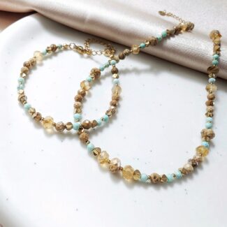 Kamień rzeczny (kamień naturalnego spokoju i stabilności), wielkości 2 mm jest bazą tej bransoletki.