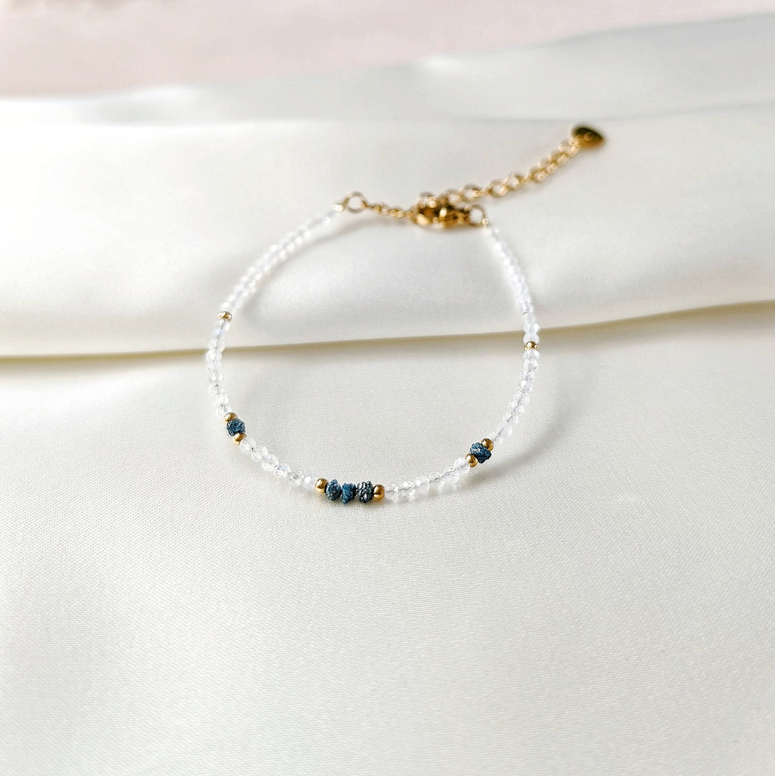 Co czyni je wyjątkowymi? To, co migocze pomiędzy półprzezroczystymi kamieniami – maleńkie, nieoszlifowane diamenty.