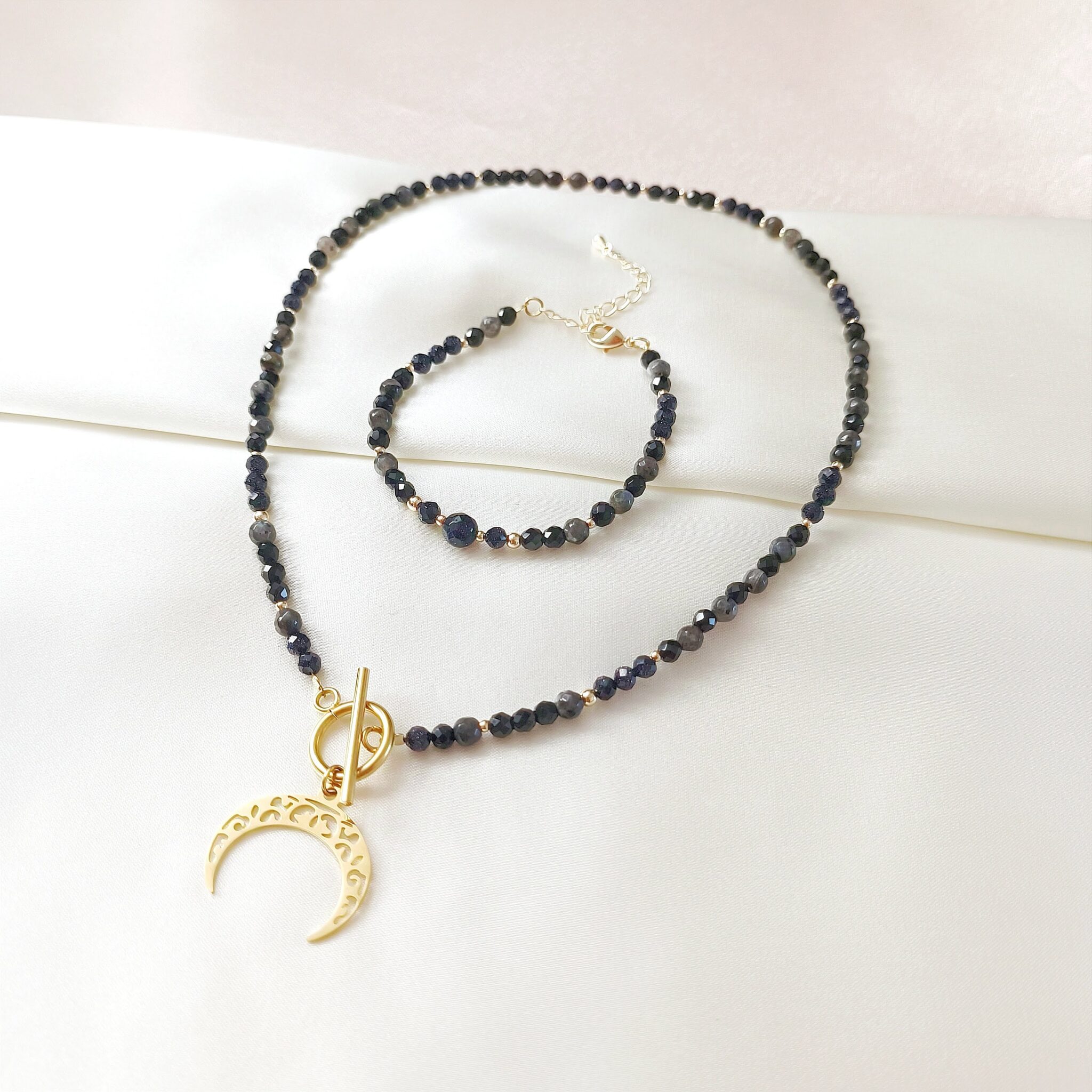 ONYXIA to klasyczny, ponadczasowy model wykonany z onyksu, czarnego turmalinu, ciemnej odmiany labradorytu oraz nocy Kairu.