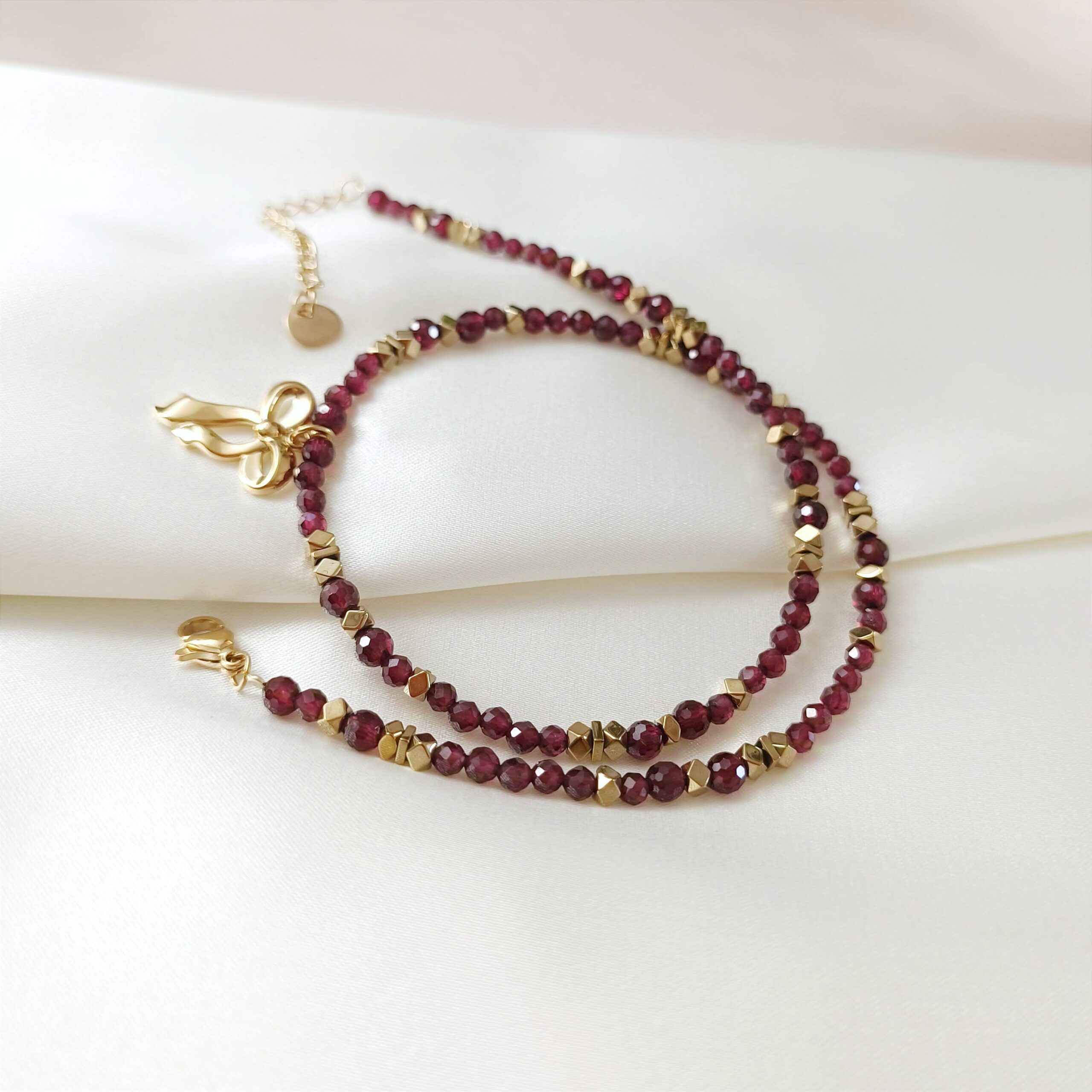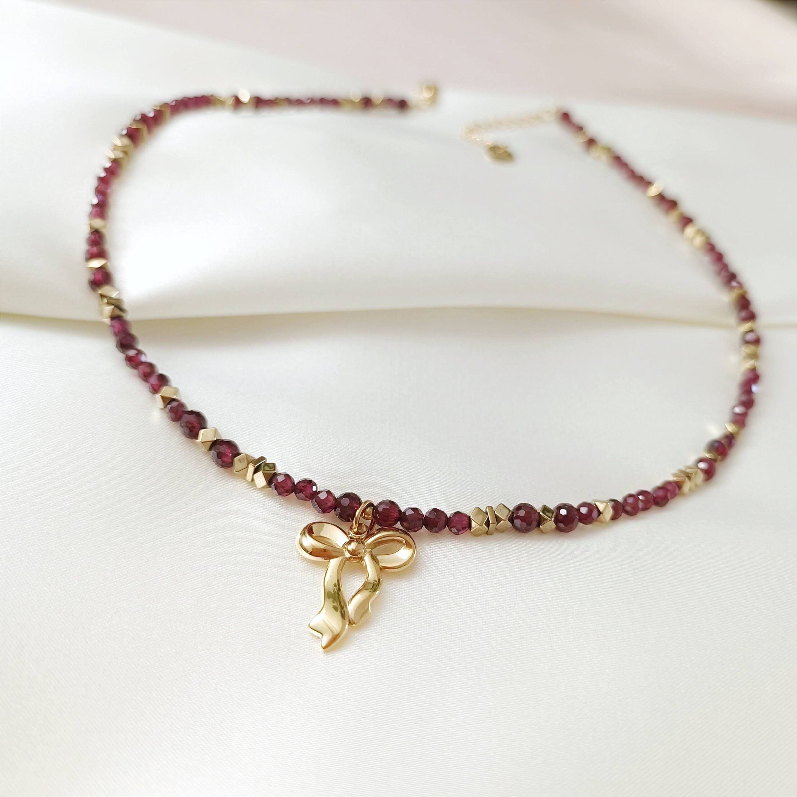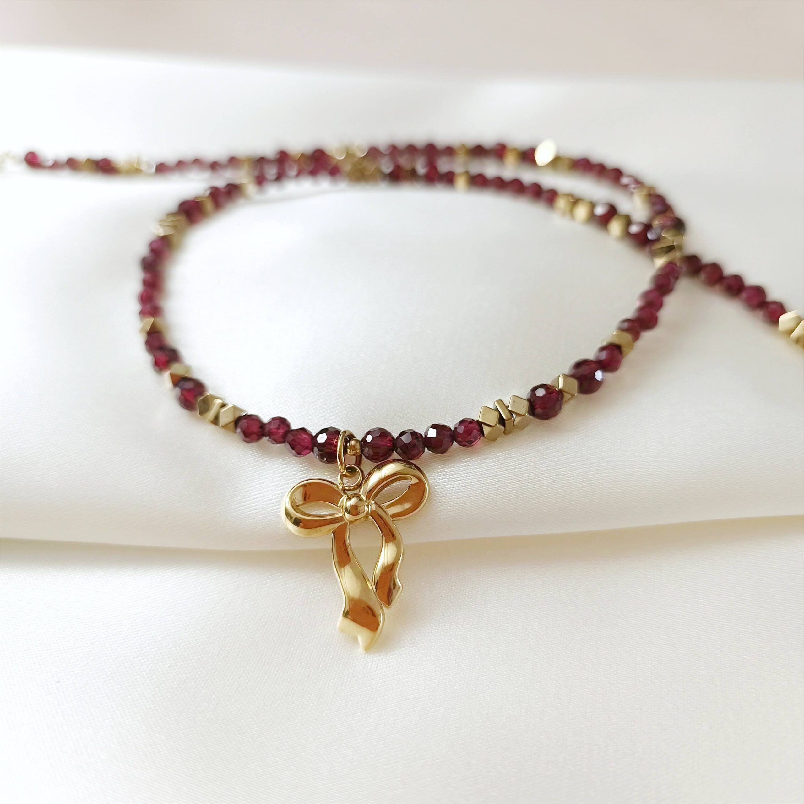 Choker z kokardką PASSION – granat i hematyt