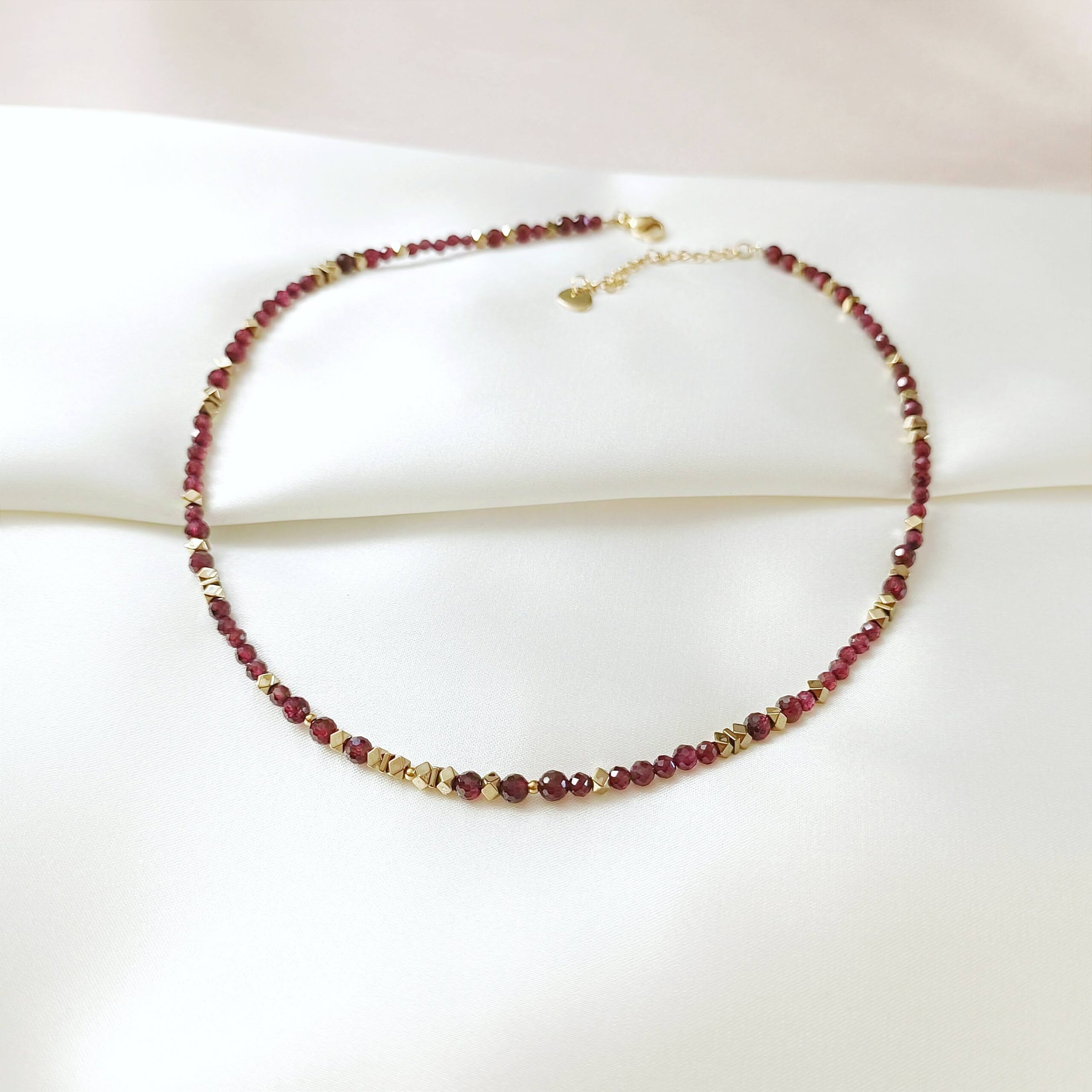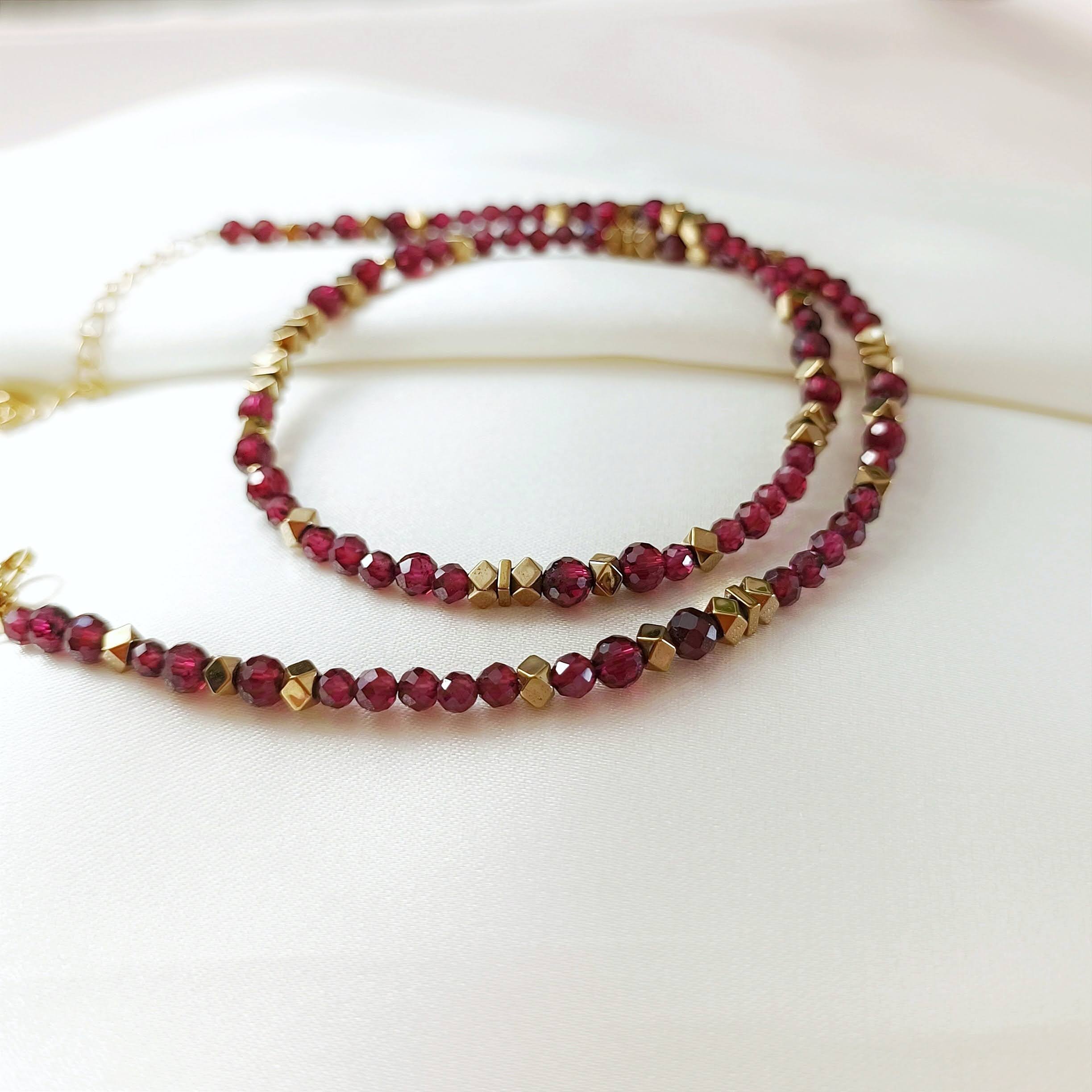 Choker PASSION II wykonany jest z naturalnego granatu oraz hematytu w kolorze złotym.
