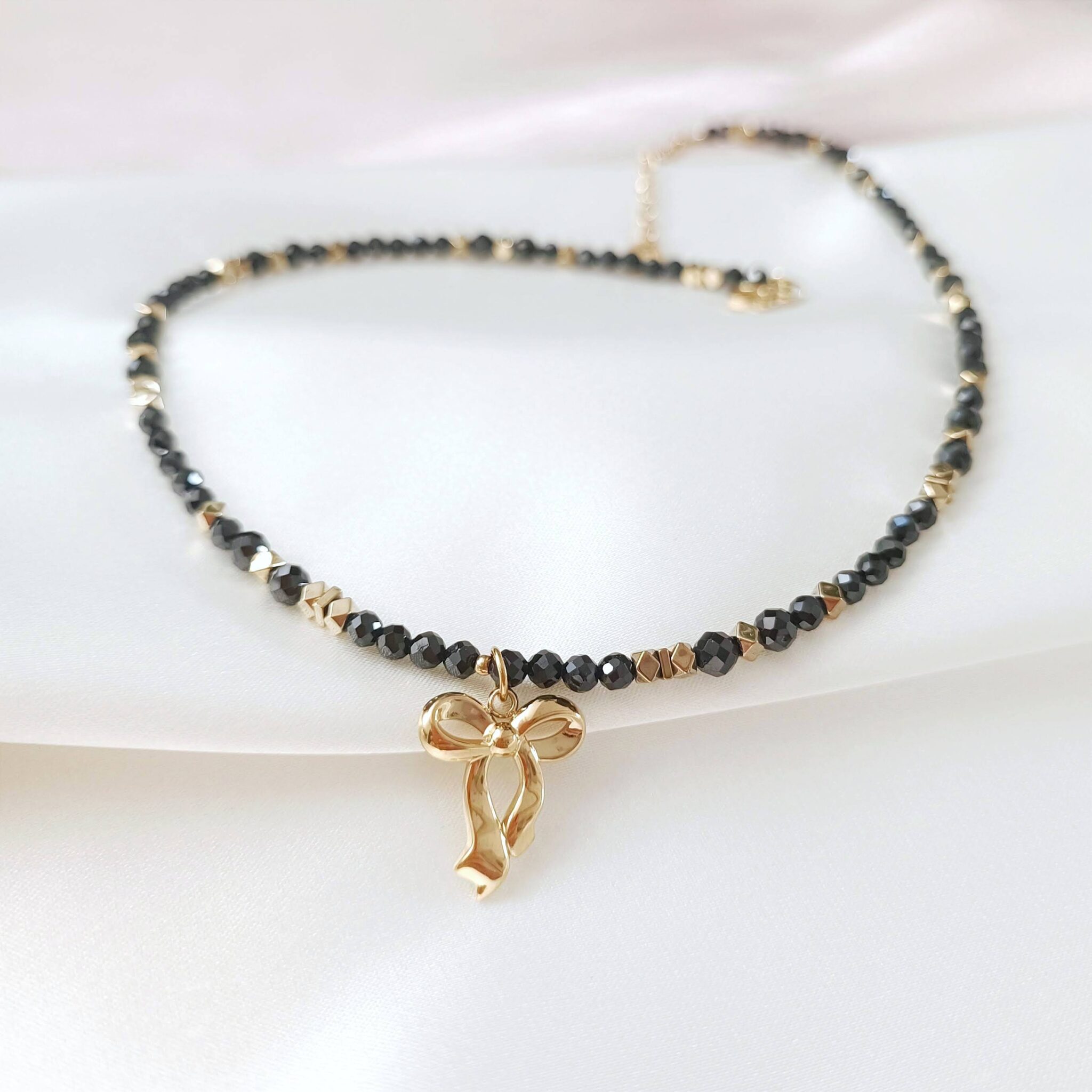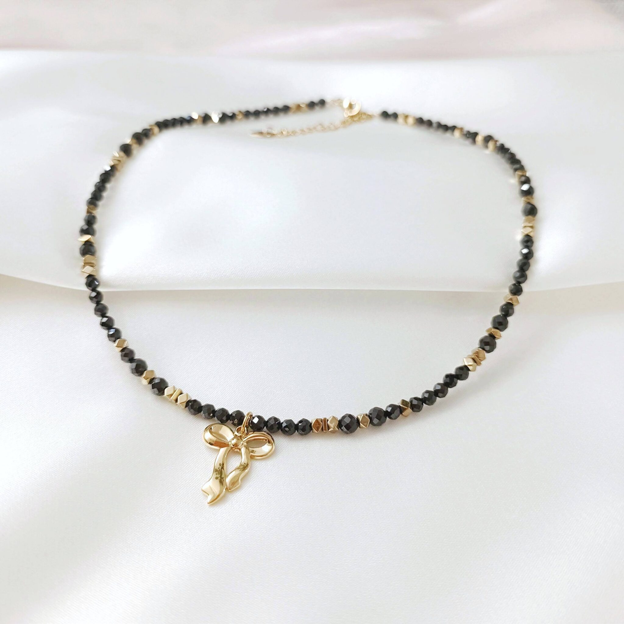 Choker POWER wykonany z czarnego spinelu oraz hematytu w kolorze złotym.