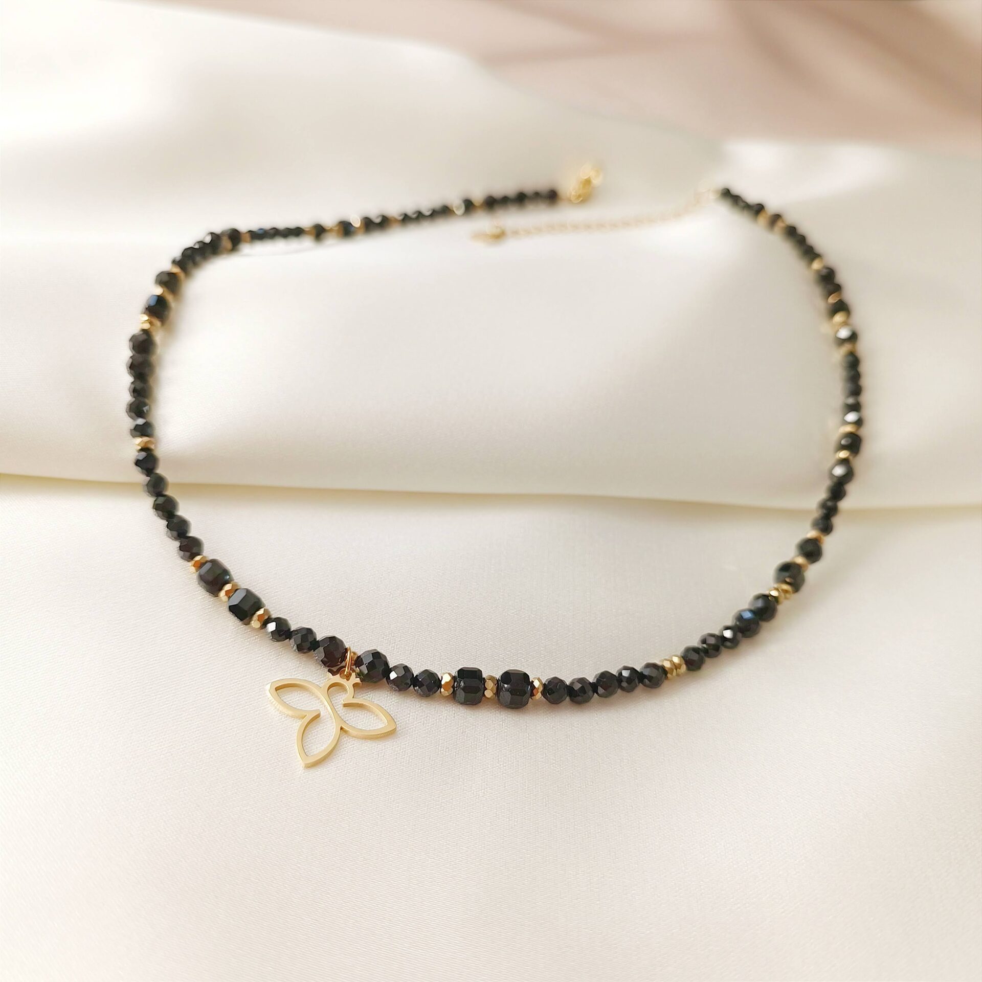 Czarny choker ze spinelem jest dostępny również w wersji z czterema zawieszkami:
