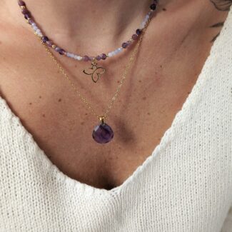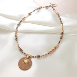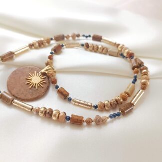 Każdy egzemplarz naszyjnika jest starannie wykonany ręcznie, co podkreśla jego unikalność. Naturalne kamienie tworzą harmonijną kompozycję, która może stać się osobistym talizmanem – dodającym siły, odwagi i wewnętrznej równowagi.