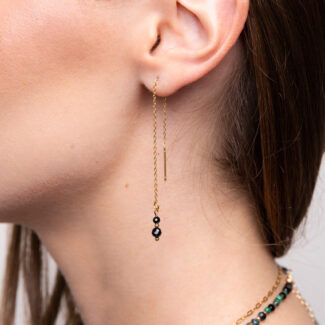 Kolczyki są asymetryczne – różnią się długością, co dodaje im nowoczesnego charakteru. Istnieje jednak możliwość zamówienia dwóch jednakowych kolczyków, jeśli wolisz klasyczne rozwiązanie.