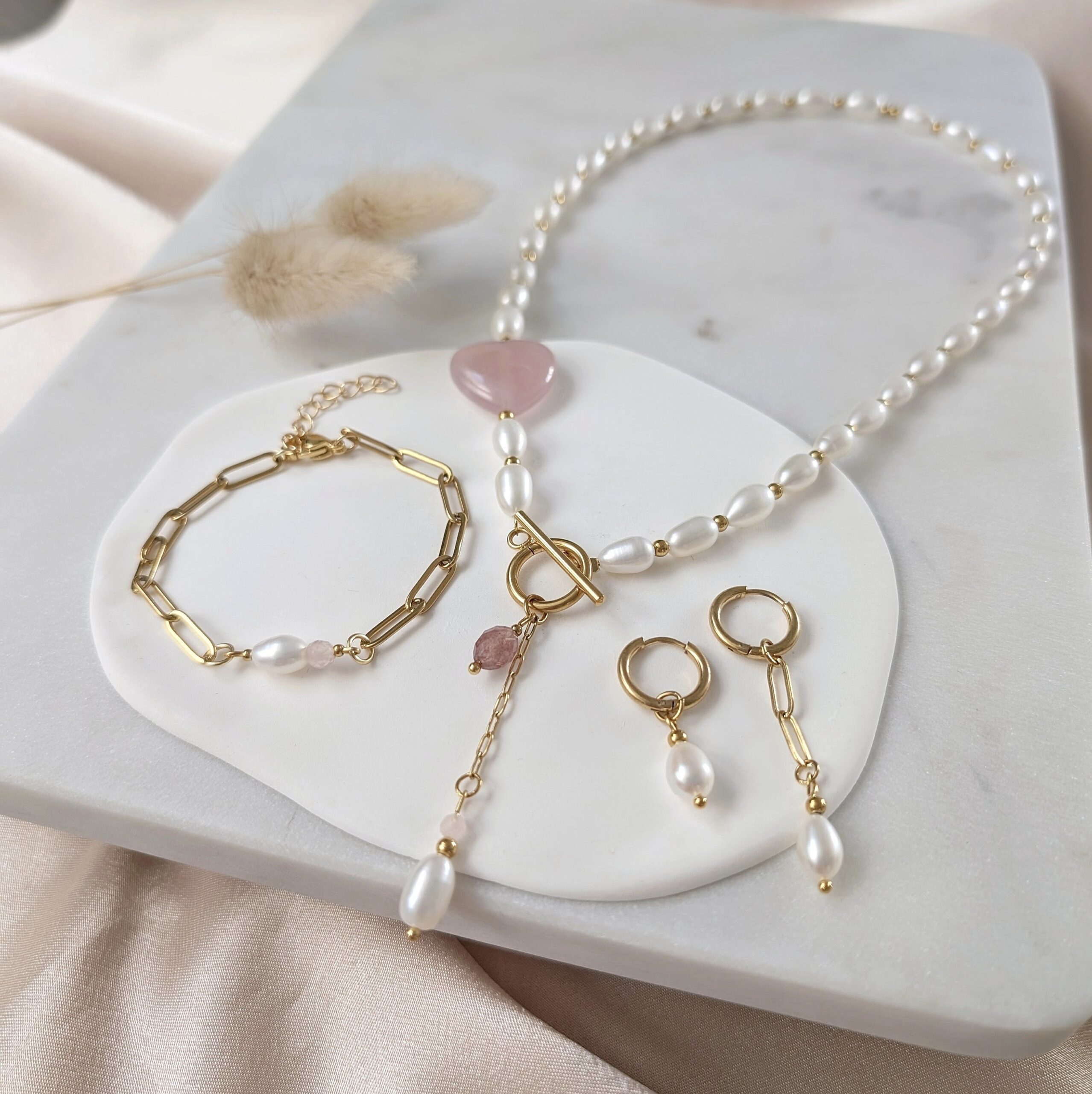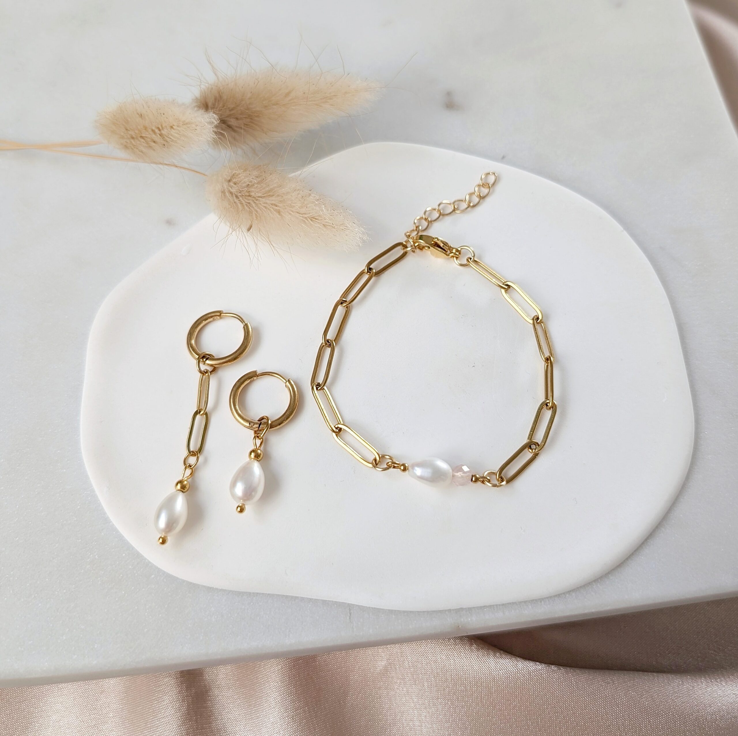 - Z perłowymi zawieszkami, dodając stylizacji szyku i elegancji.
