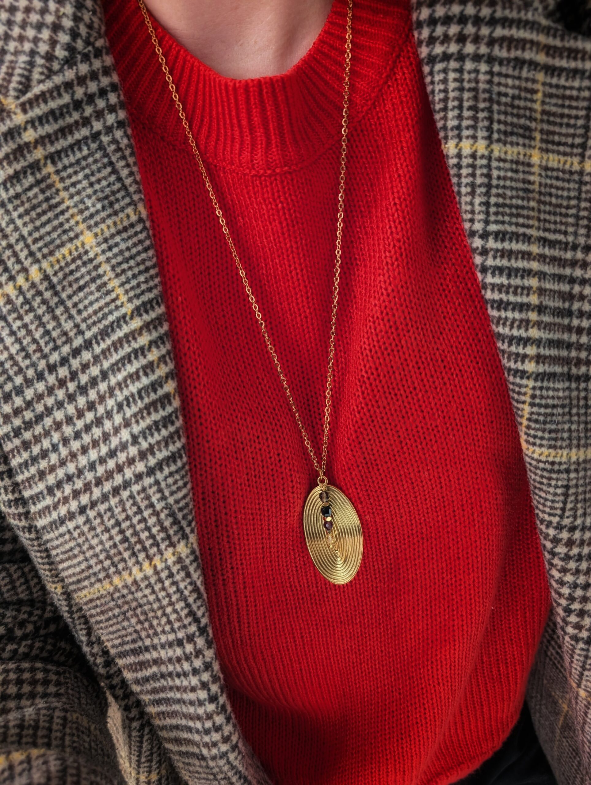 Zawieszka duża, owalna blaszka z oryginalnymi żłobieniami.