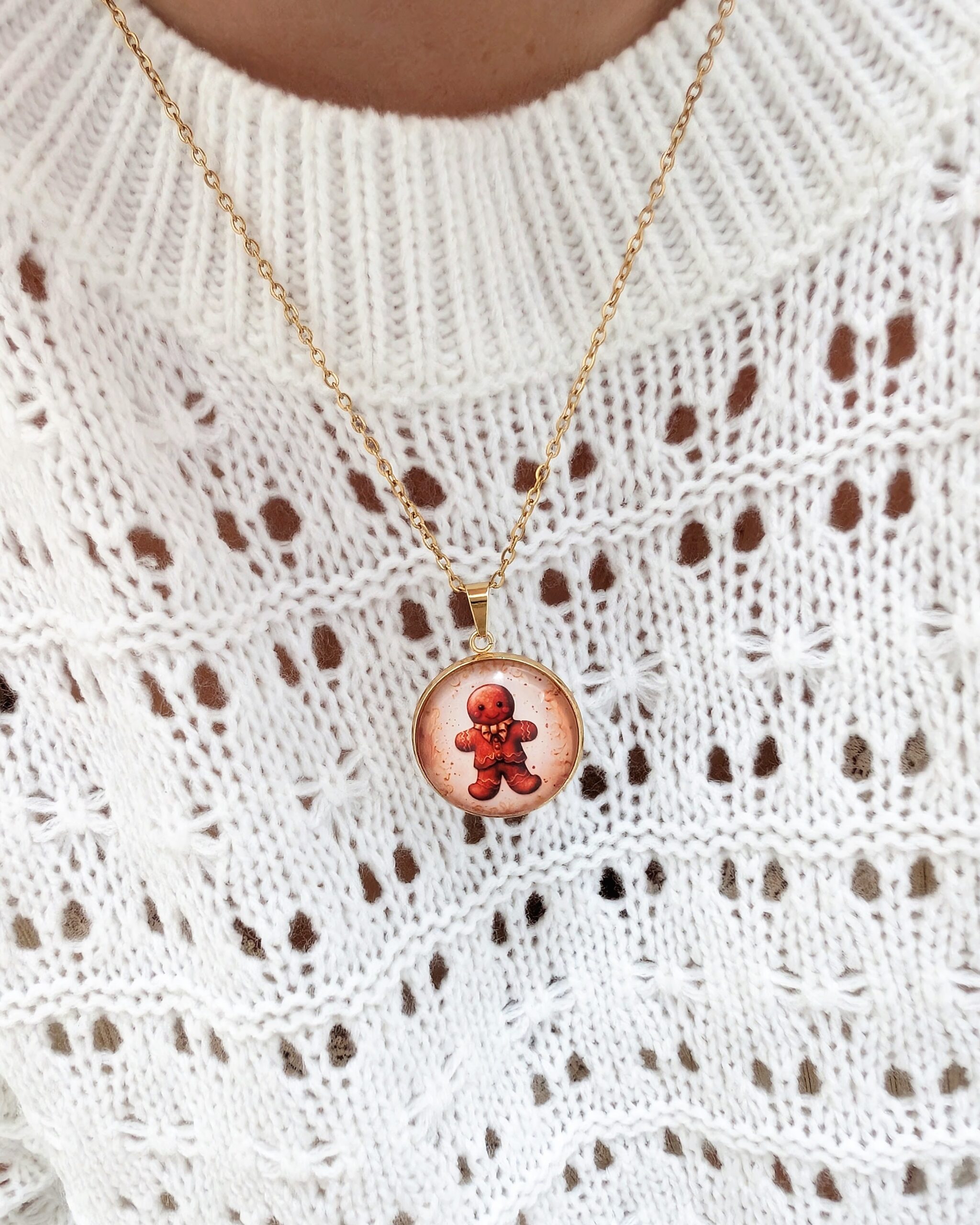 Wisiorek z bajkowym pierniczkiem ociepli świąteczne stylizacje. Będzie idealnym prezentem dla kobiety w każdym wieku, również dla dziecka.