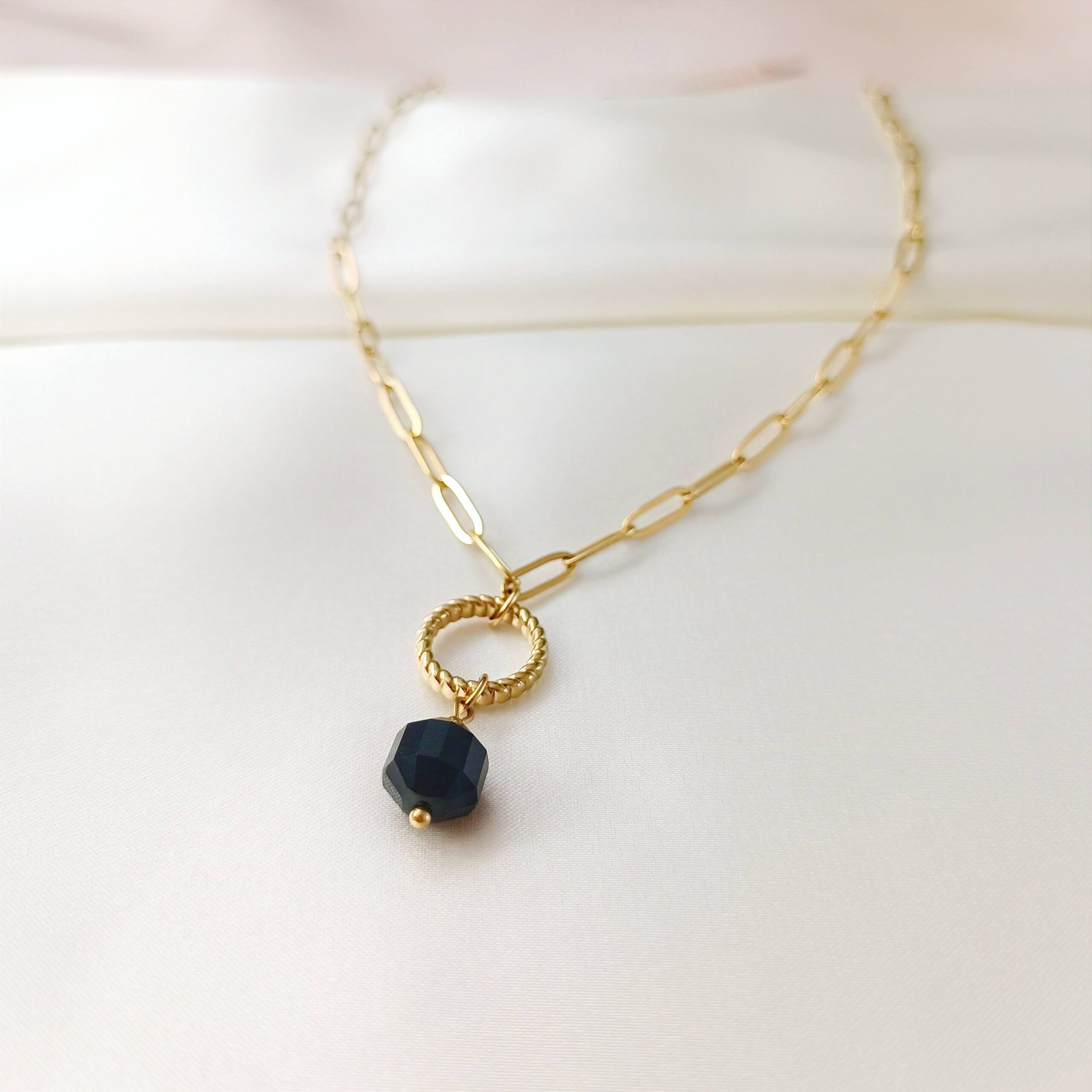 Zawieszką jest ozdobne kółeczko, a na nim bryłka czarnego agatu.
