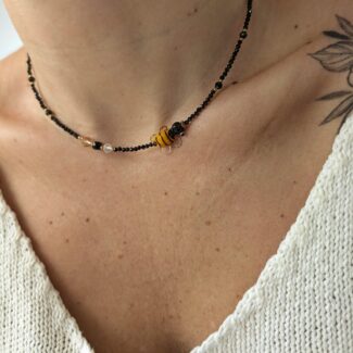 Agat w czarnej odmianie – kamień ochrony, stabilizacji i siły. Pomaga w ugruntowaniu i wyciszeniu, dodając poczucia bezpieczeństwa i stabilności emocjonalnej. Czarny agat wzmacnia wytrwałość psychiczną, odpiera negatywne energie oraz wspiera w radzeniu sobie ze stresem i trudnościami.