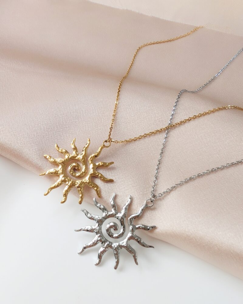 Oryginalna, charakterystyczna zawieszka w kształcie słońca.