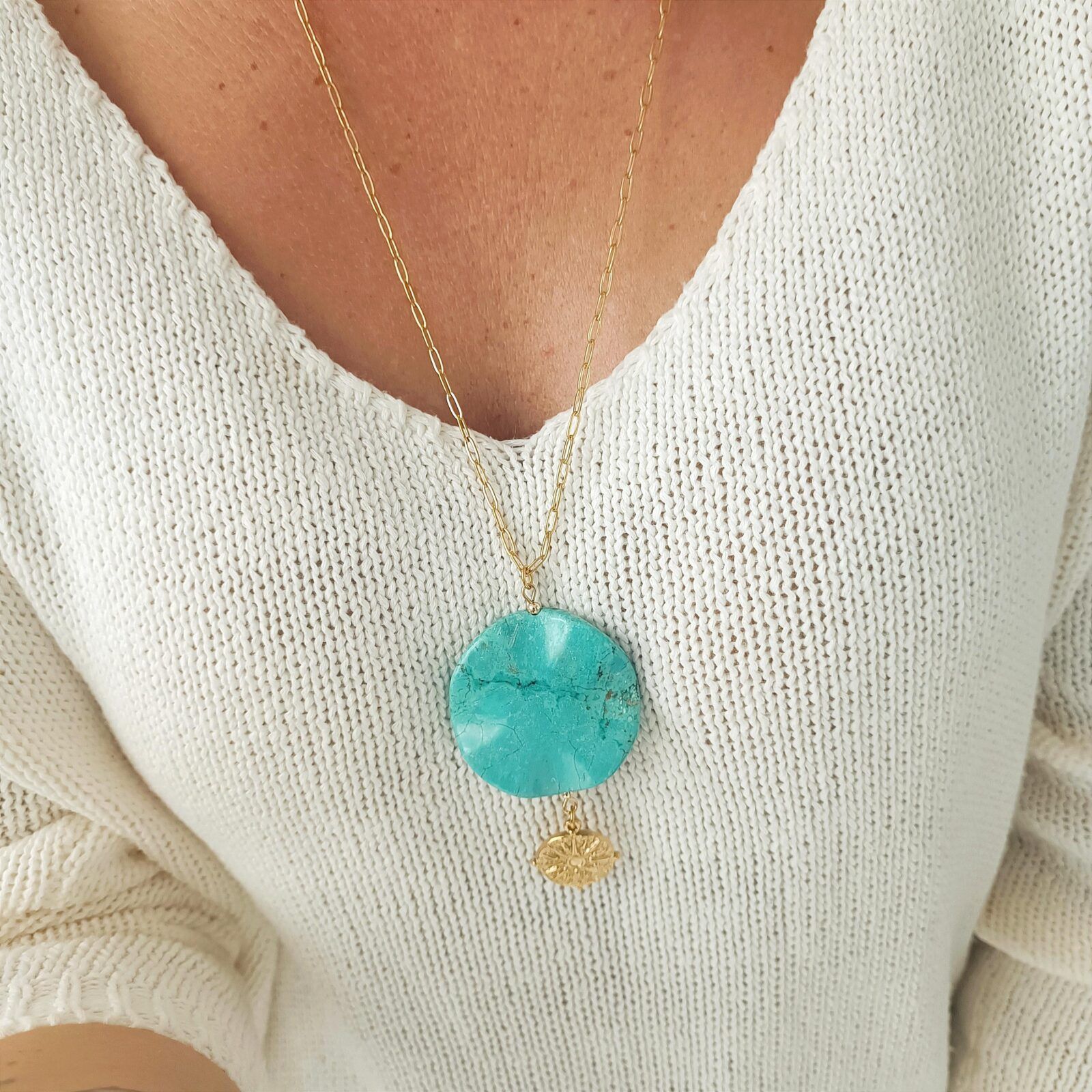 Oryginalny wisior z dużą, kamienną zawieszką. Turkusowy howlit.