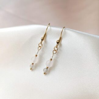 Środek naszyjnika zdobi kropla białego jadeitu. Jest on symbolem spokoju, harmonii i łagodności wobec samej siebie. Pomaga odnaleźć równowagę i poczucie bezpieczeństwa w codzienności.