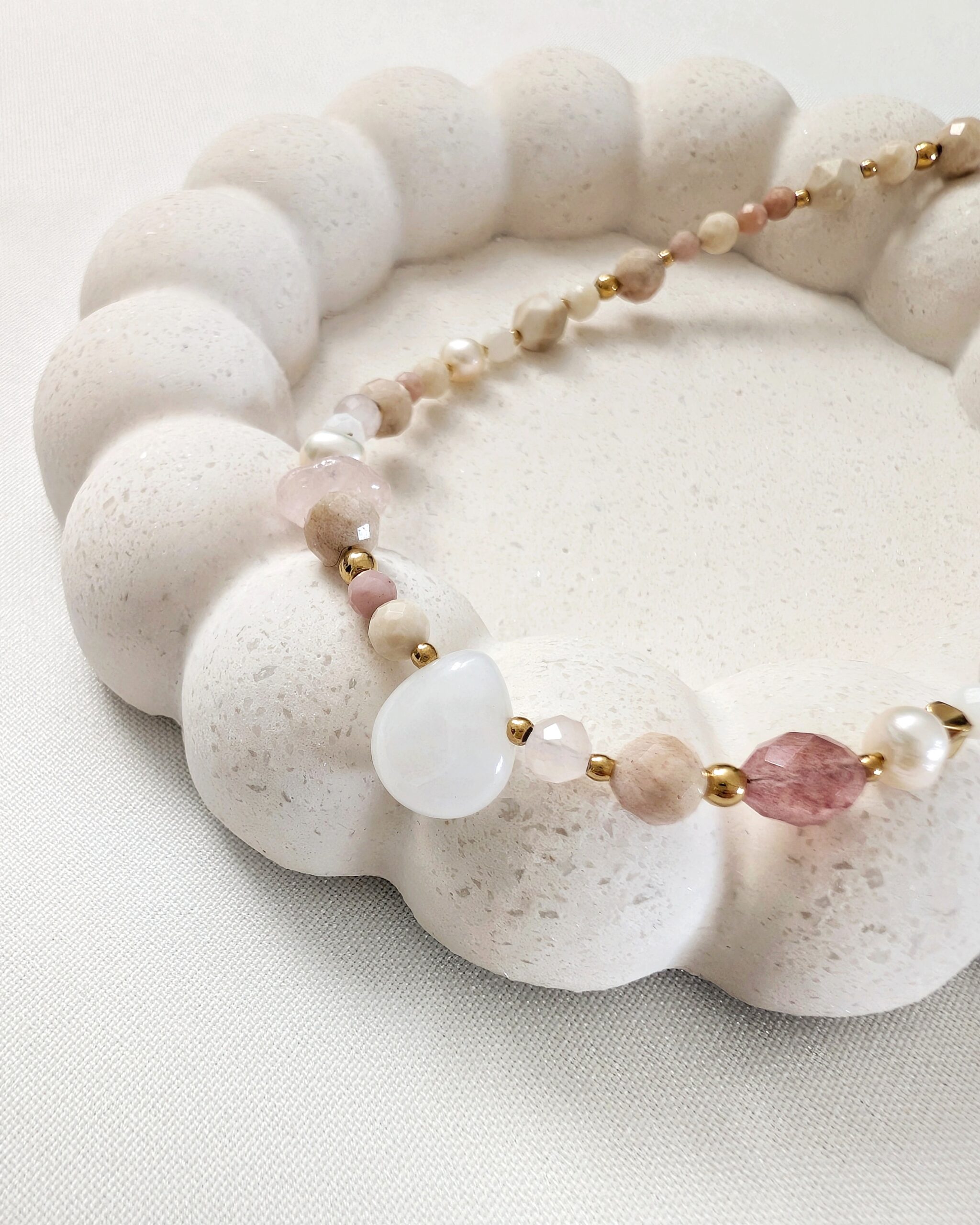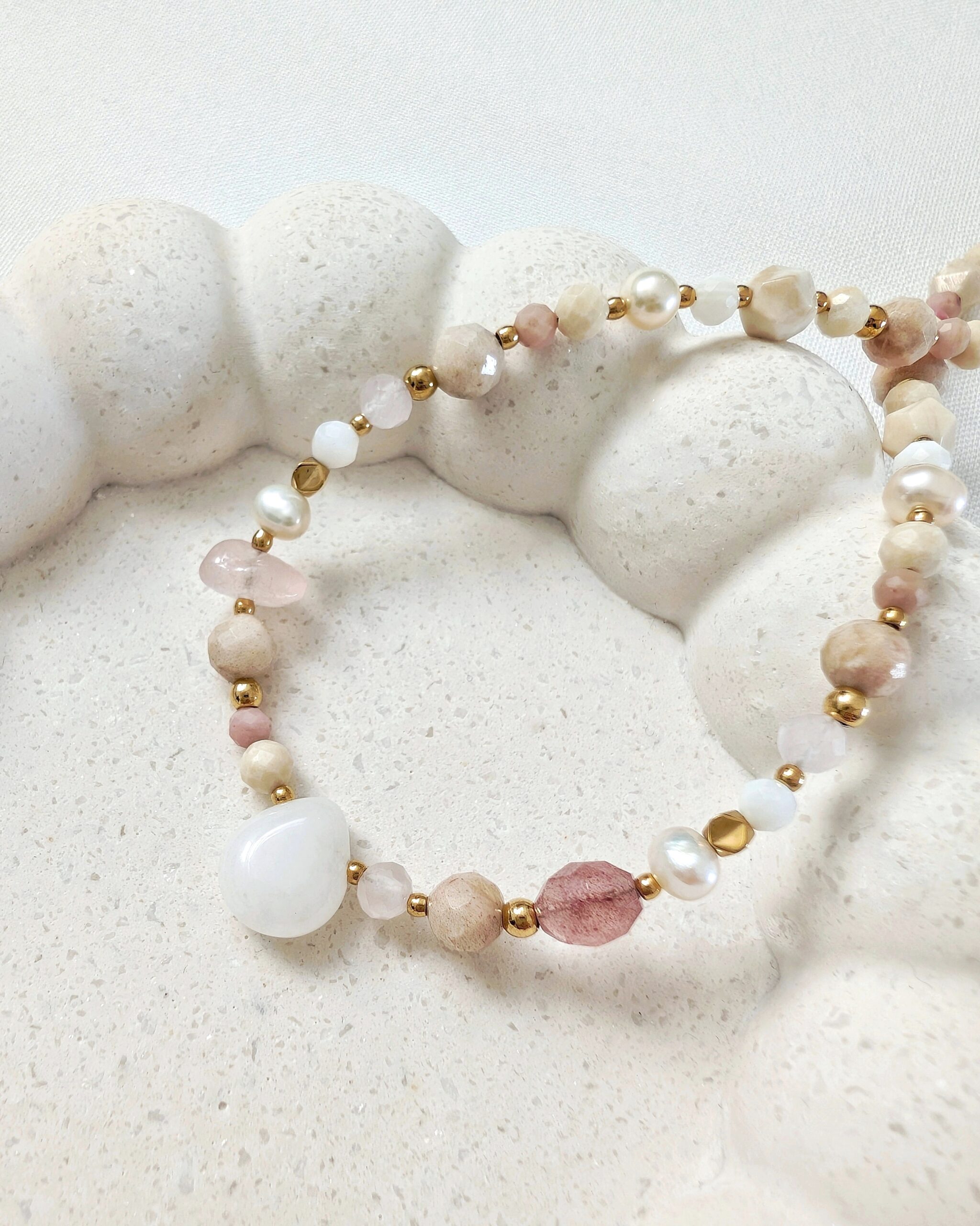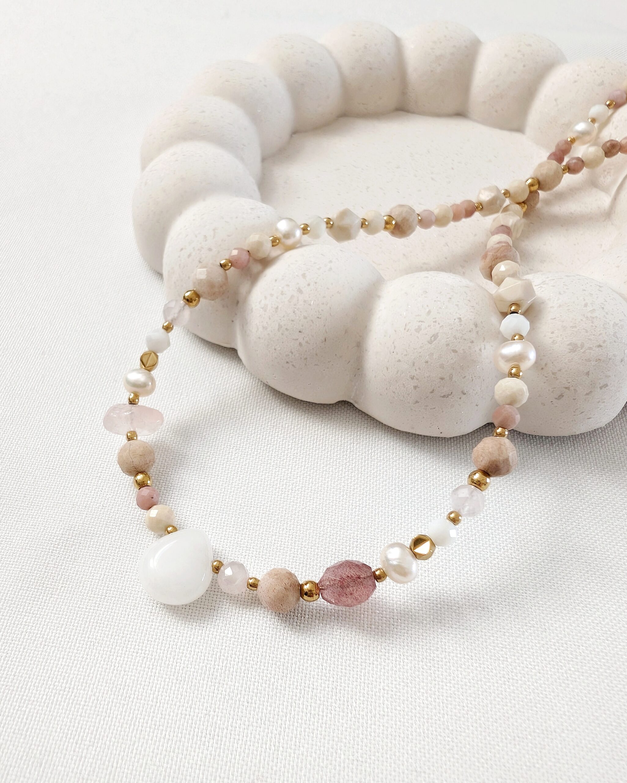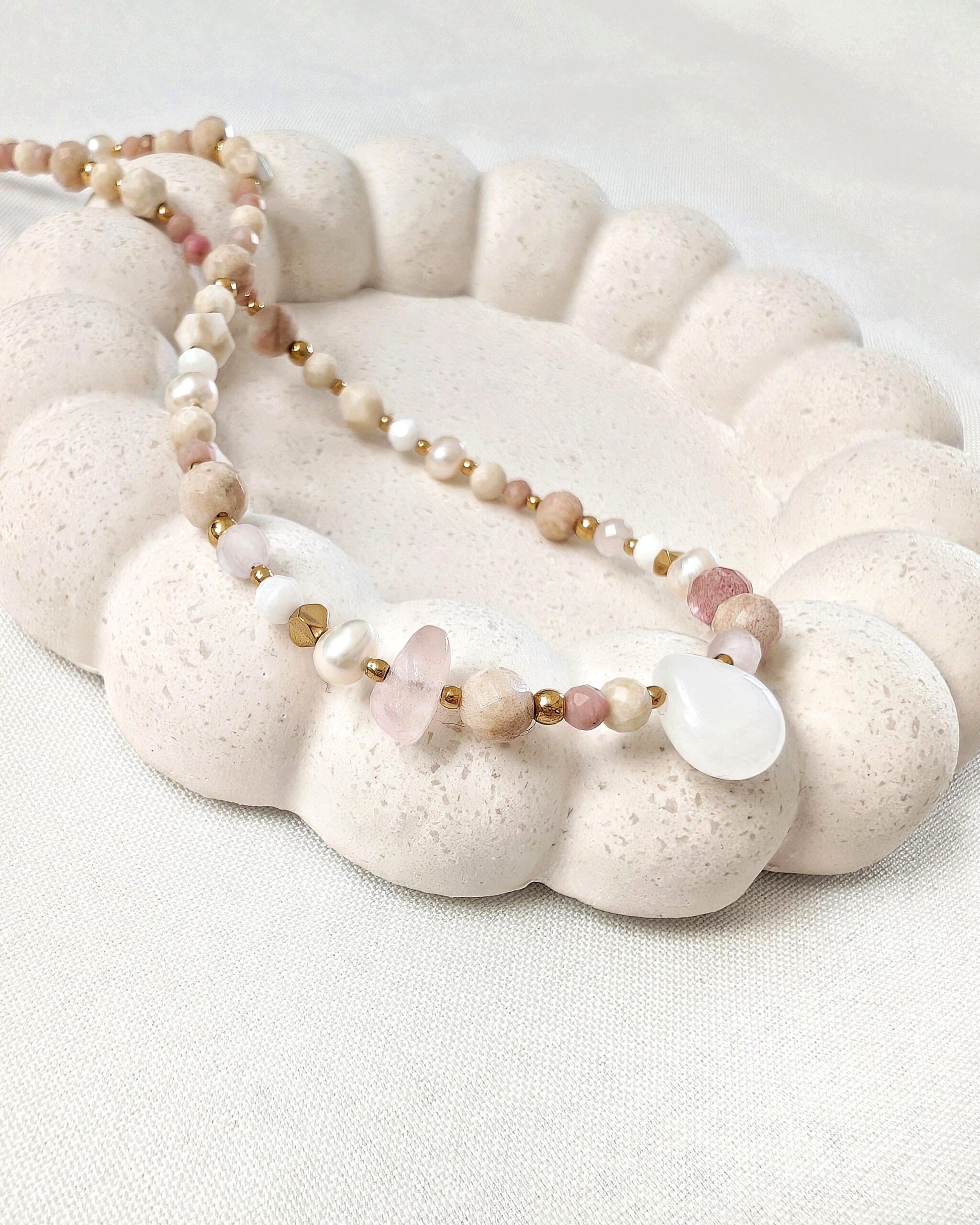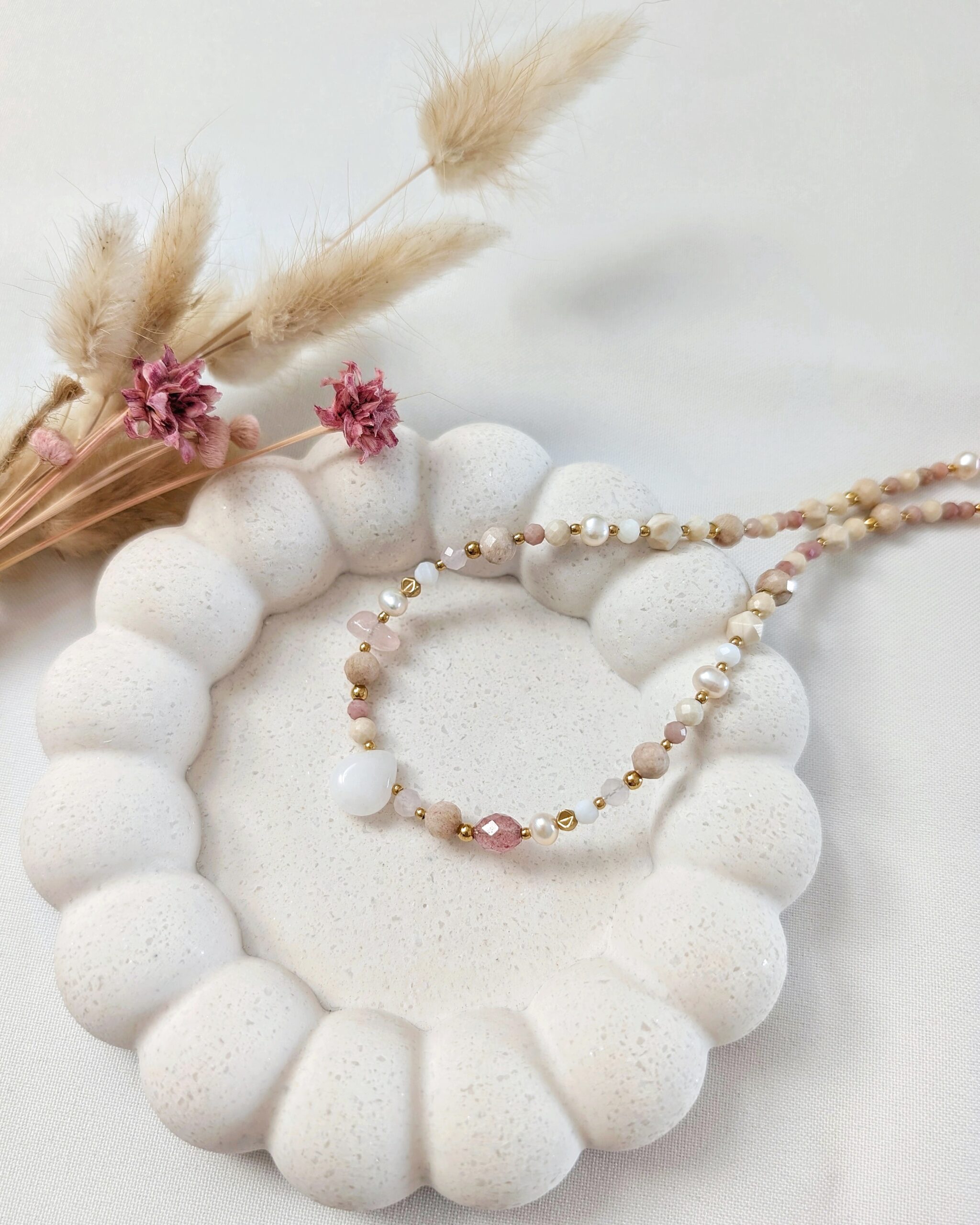 AMORE MIO to naszyjnik stworzone z myślą o Walentynkach, ale bez dosłowności. Bez serduszek, bez oczywistych symboli… ale z kamieniami, które niosą znaczenie.