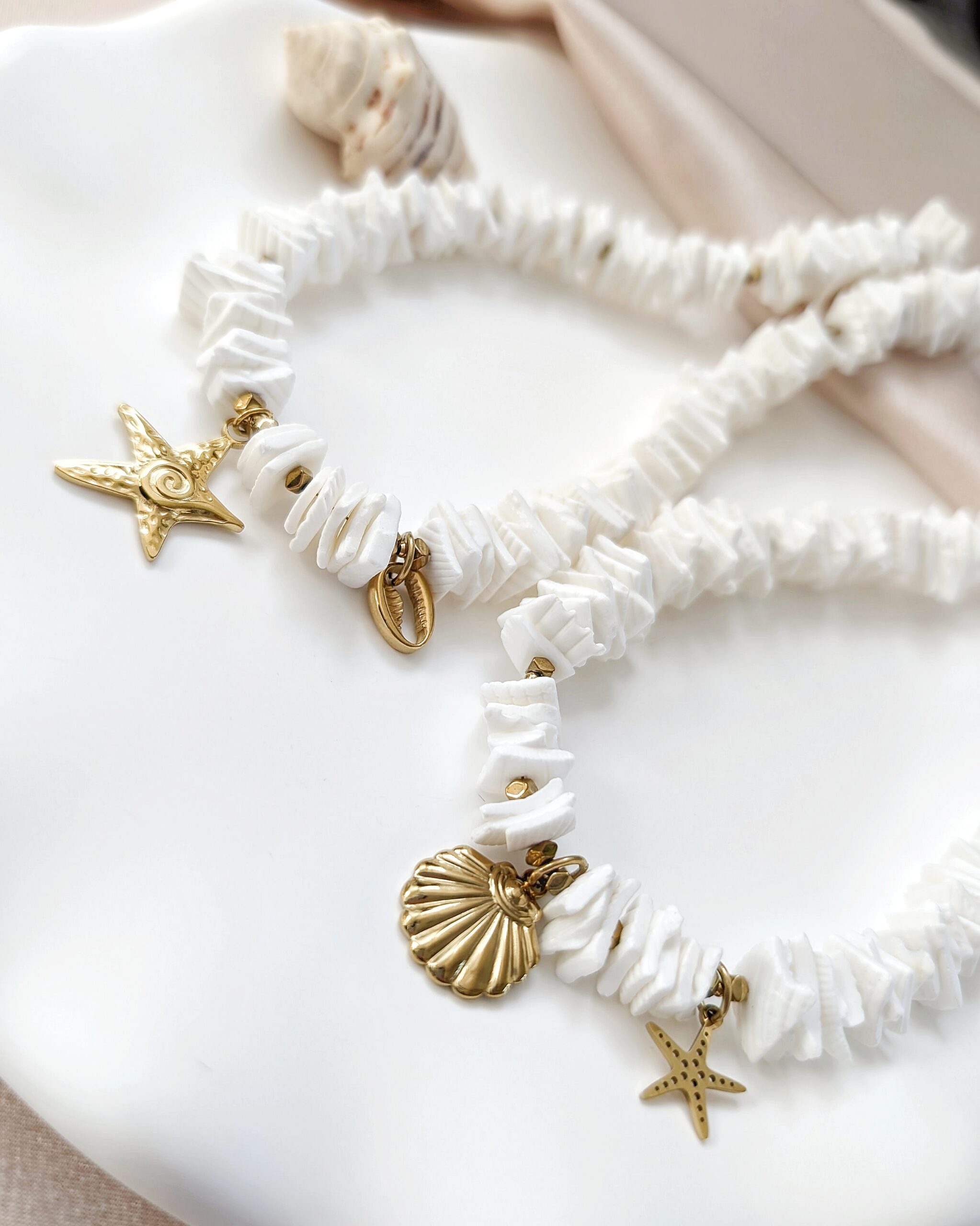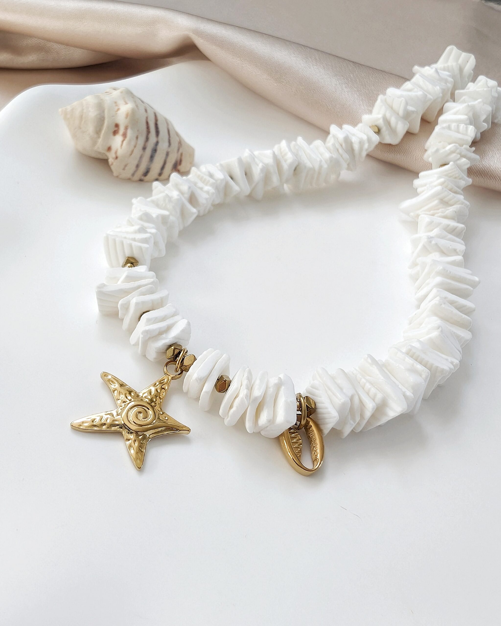 Naszyjnik SHELLY II – biała muszla cięta