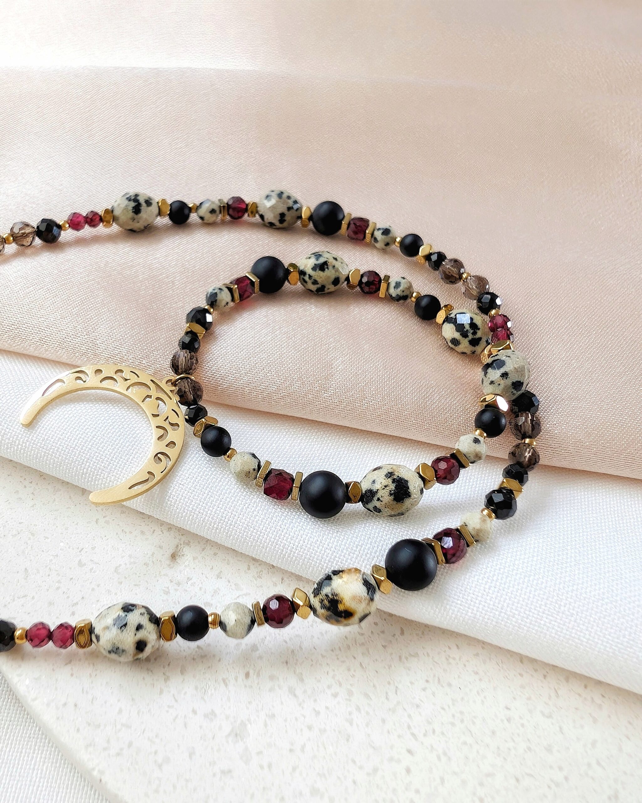 Jaspis dalmatyński – kamień, który sprzyja poczuciu radości i lekkości. Wspiera kreatywność, dodaje odwagi i ułatwia wyrażanie siebie. Pomaga także w równoważeniu energii, co sprzyja stabilności emocjonalnej i pozytywnemu myśleniu.