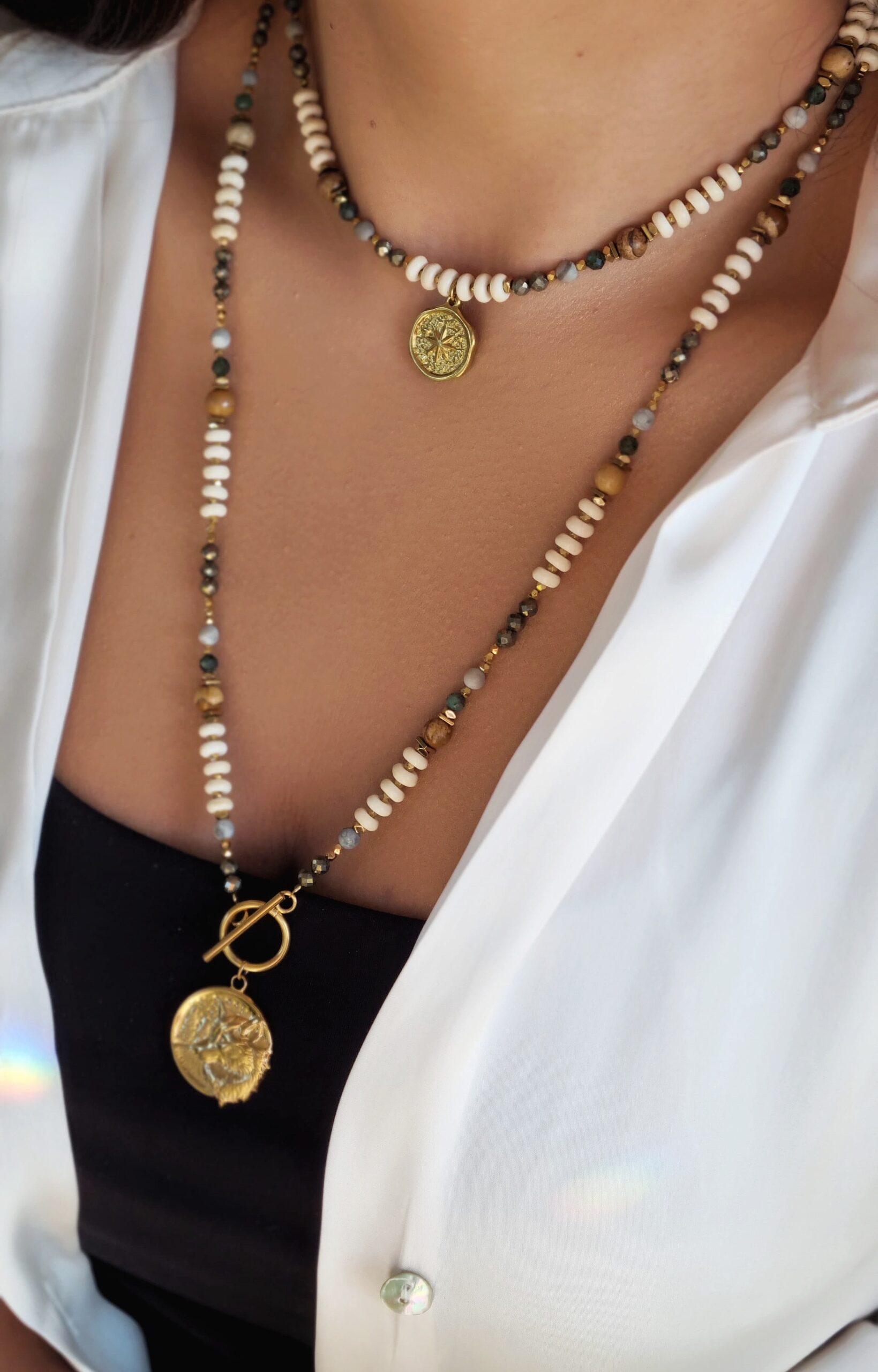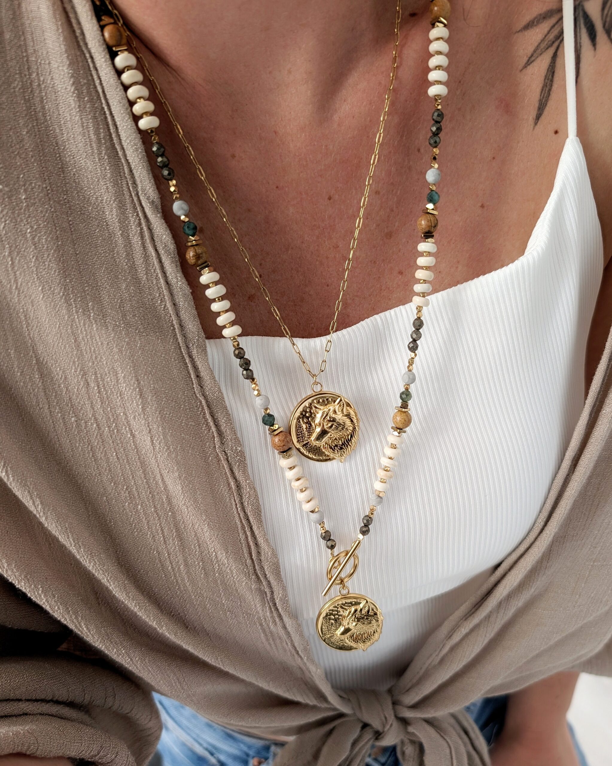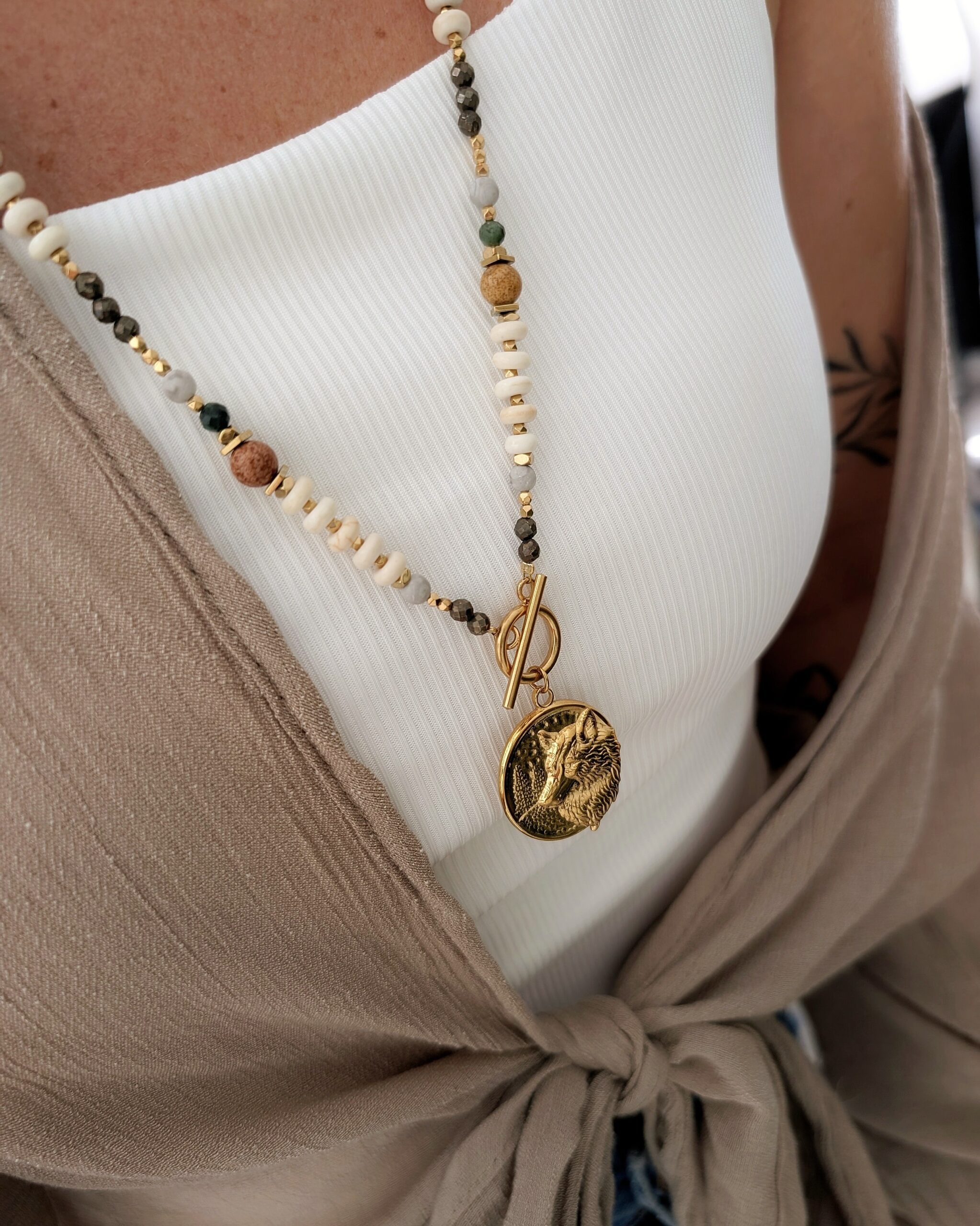 Naszyjnik GAJA to ukłon w stronę natury – jej spokoju, dzikości i ciepłych ziemistych barw.