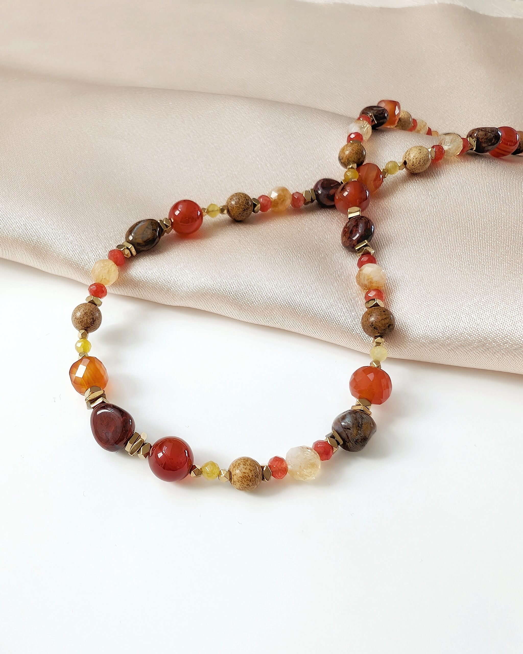 Naszyjnik, który kojarzy się ze spacerem pośród barwnych liści, przy promieniach jesiennego słońca.