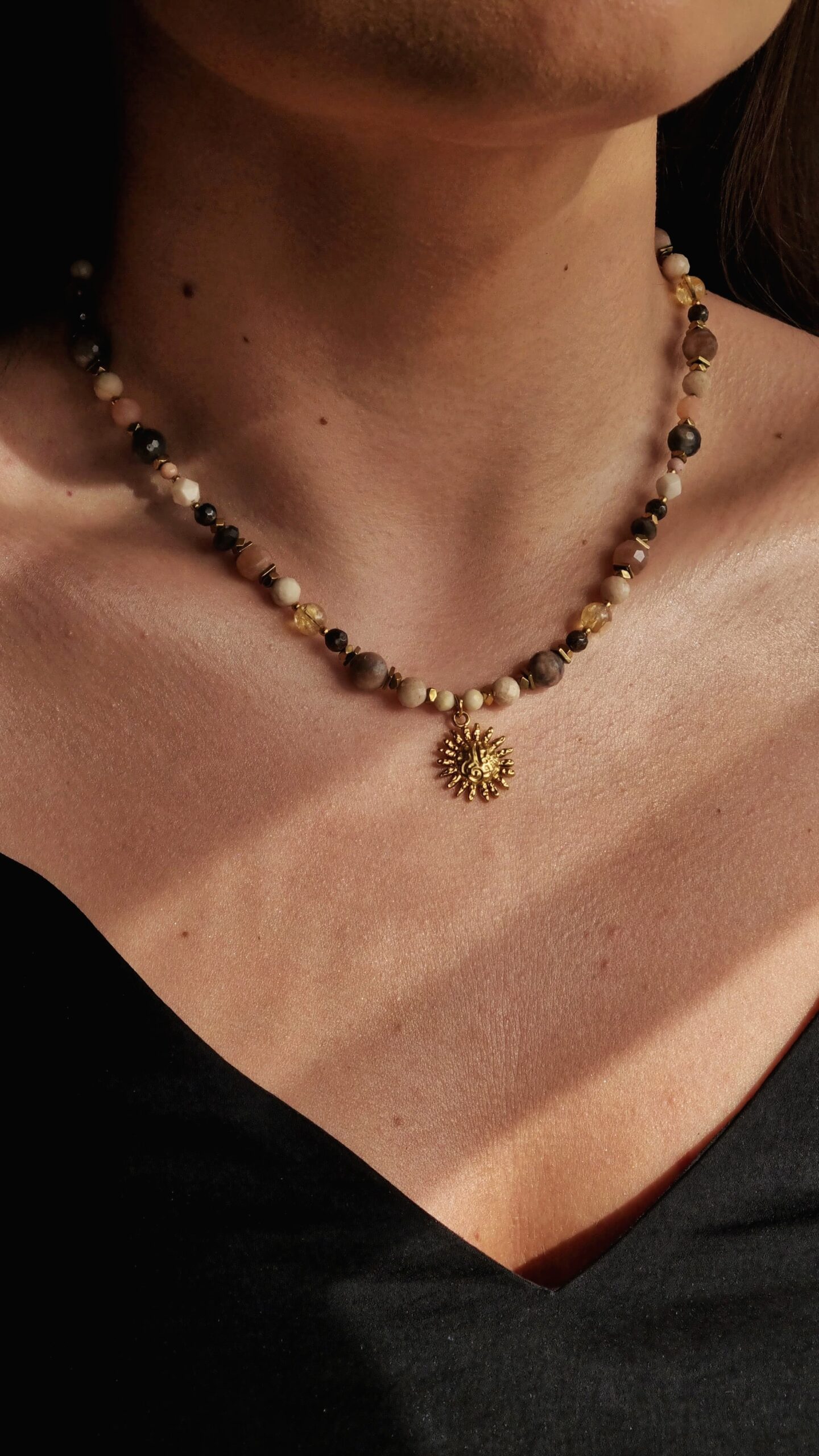 Naszyjnik MOKKA z kamieniami naturalnymi w odcieniach brązu i beżu.