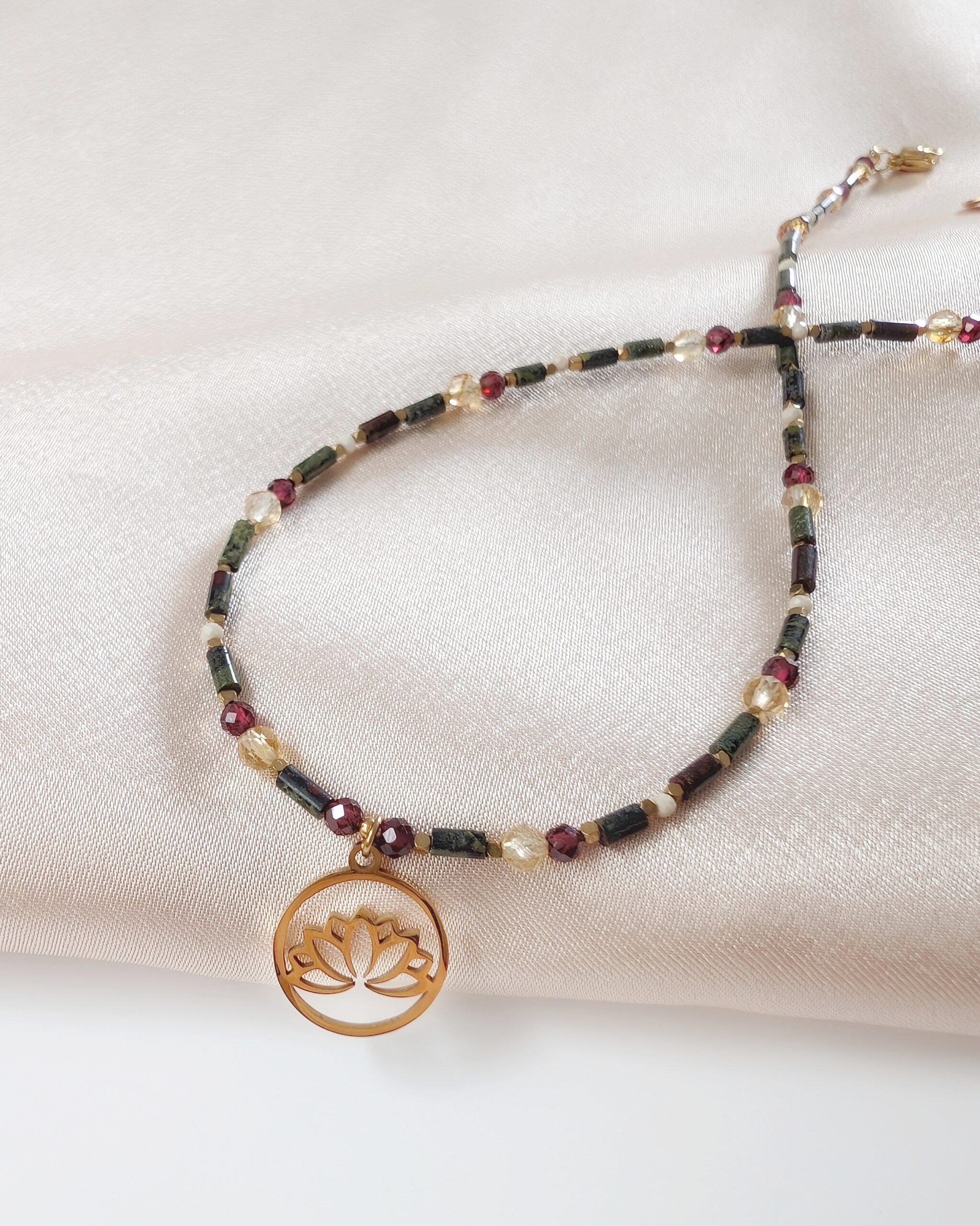 Naszyjnik PADME to subtelna kompozycja drobnych kamieni naturalnych, w których kryje się siła i delikatność jednocześnie.