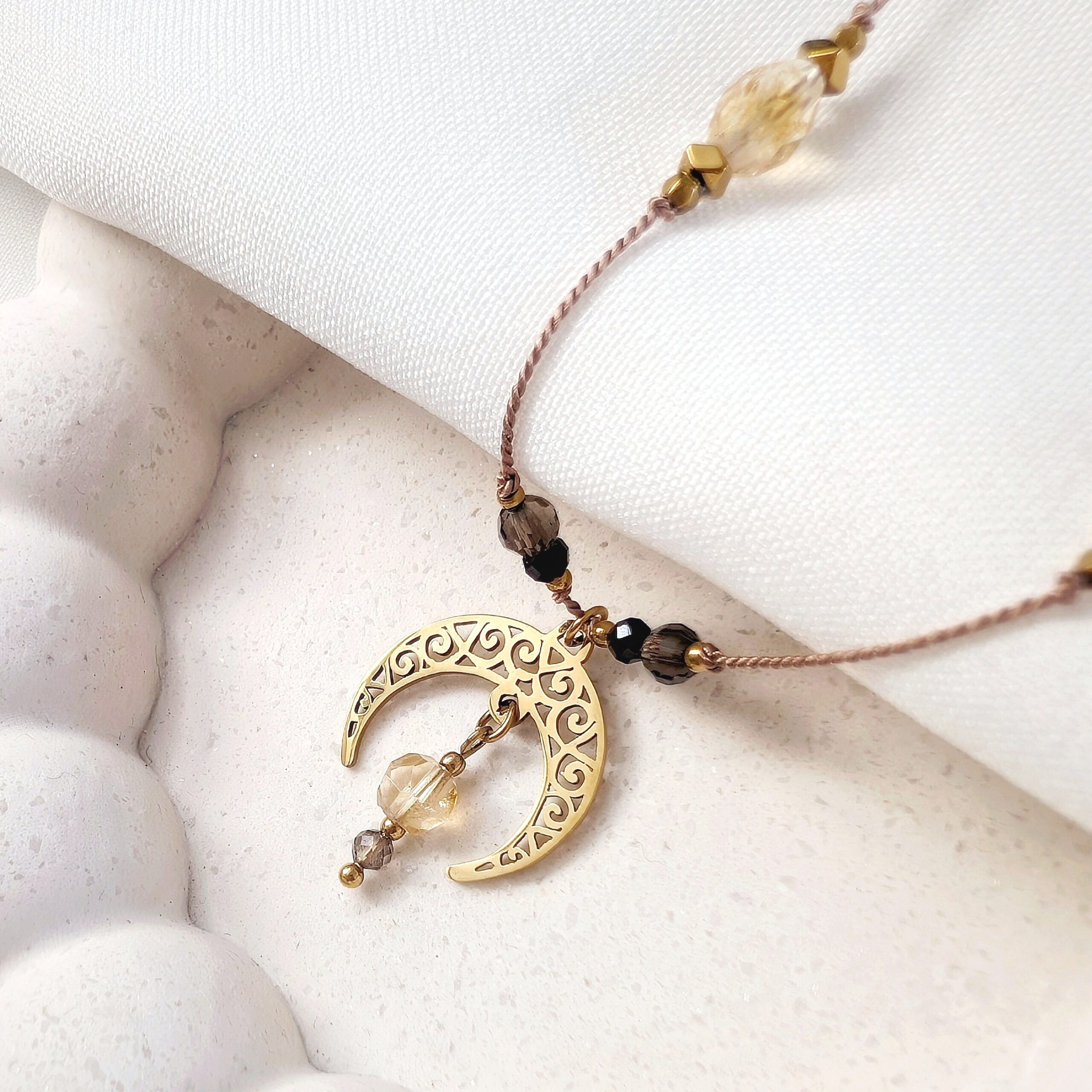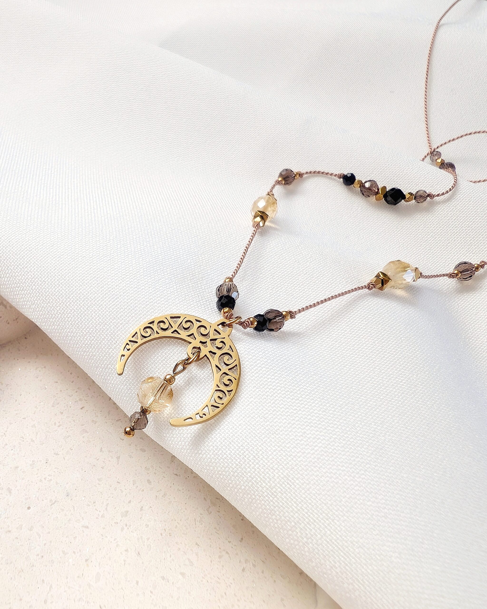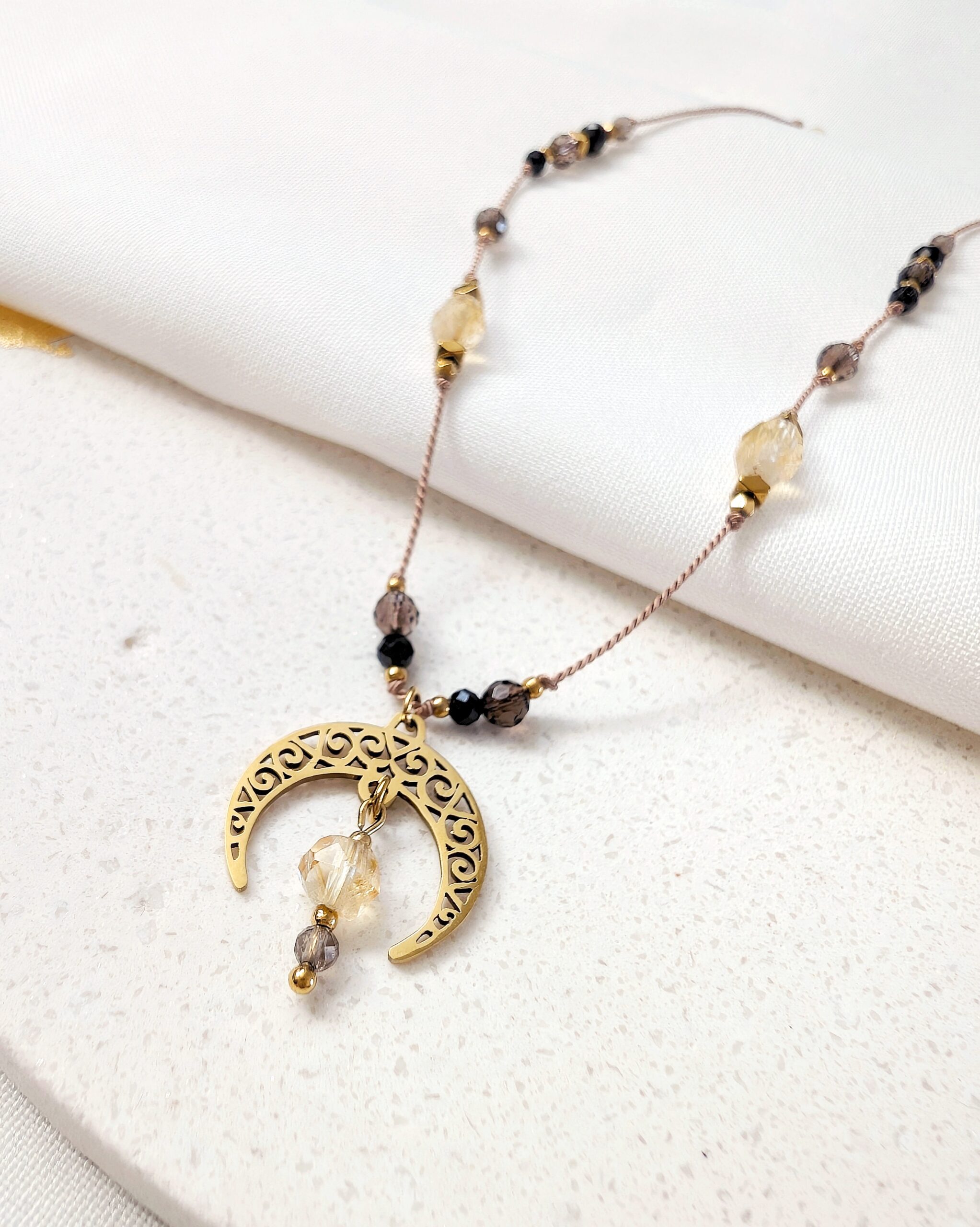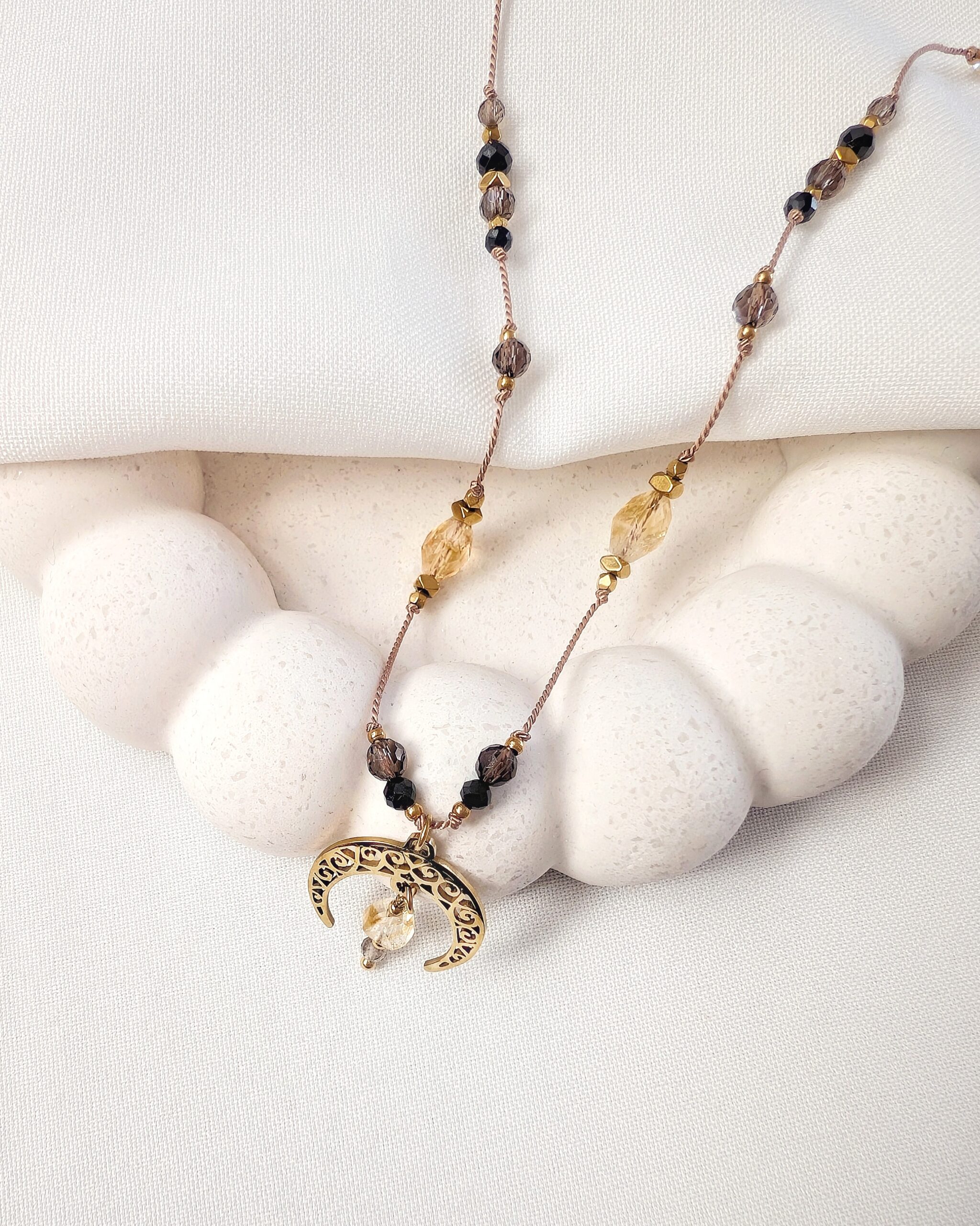 Naszyjnik SHANTA z kamieniami naturalnymi i księżycem lunulą.