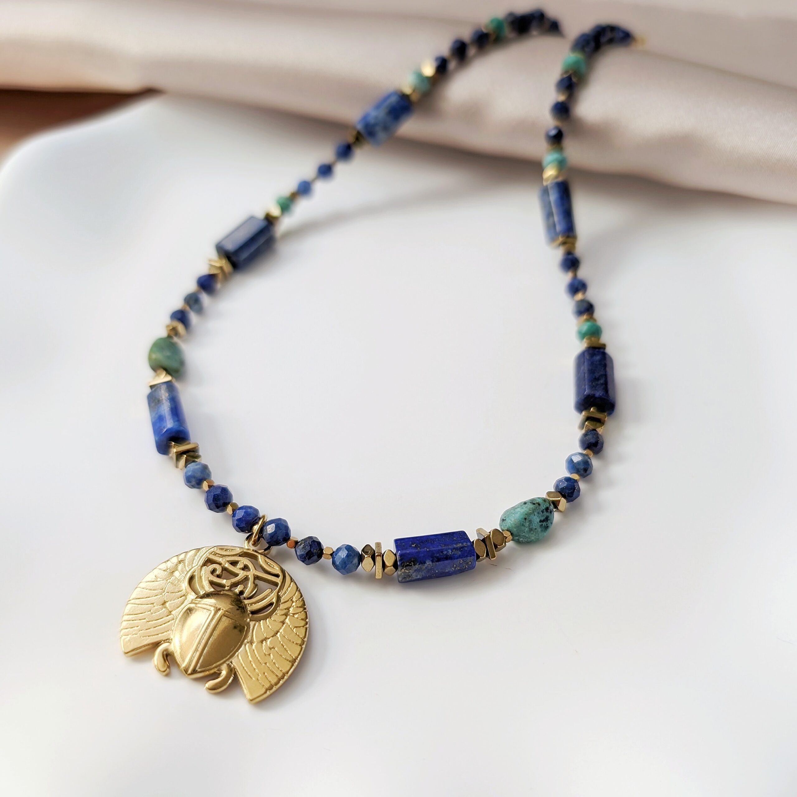 Lapis lazuli w starożytnym Egipcie był symbolem nieba, boskości i mądrości. Zdobił maskę Tutenchamona, a także biżuterię i amulety najwyższych kapłanów.