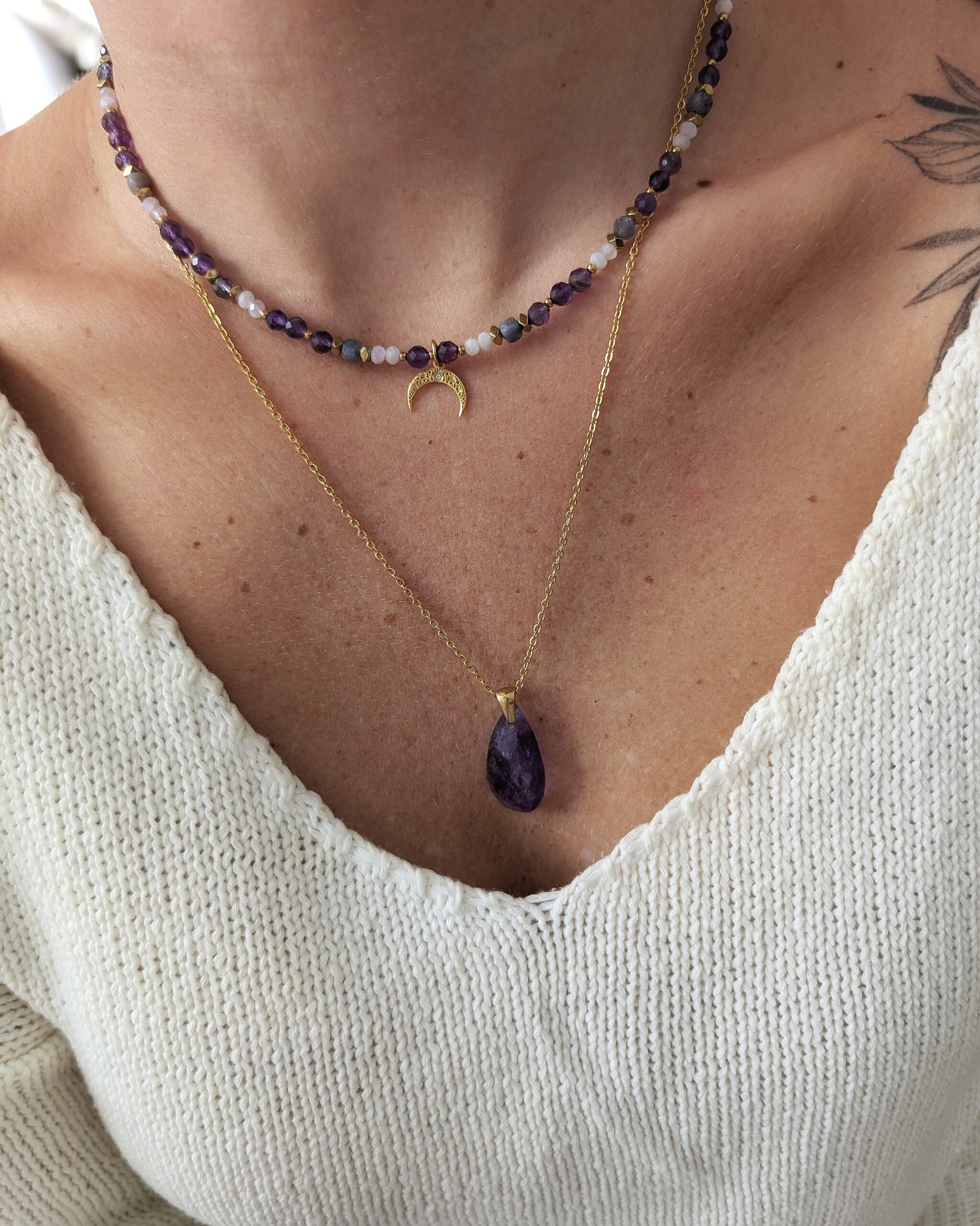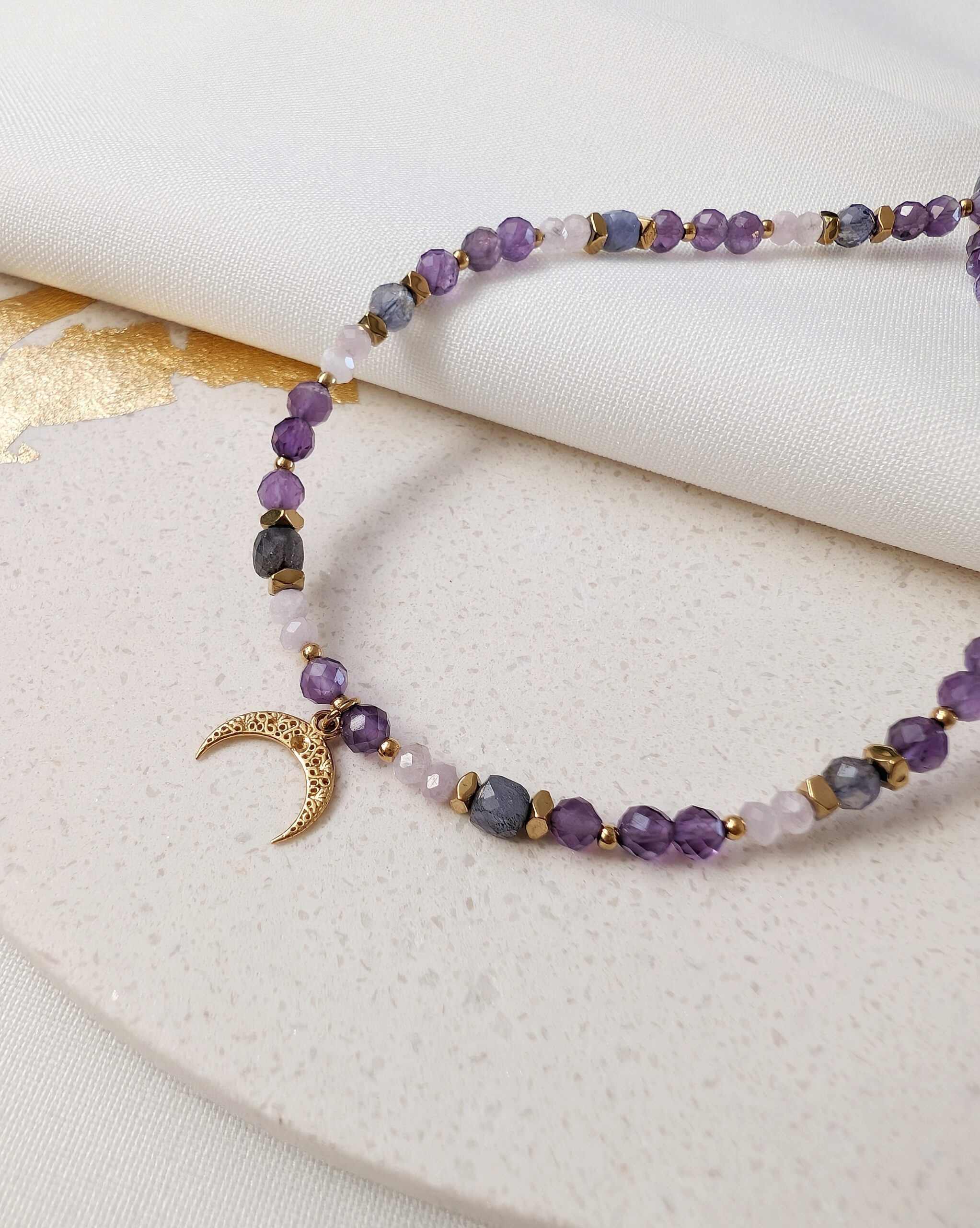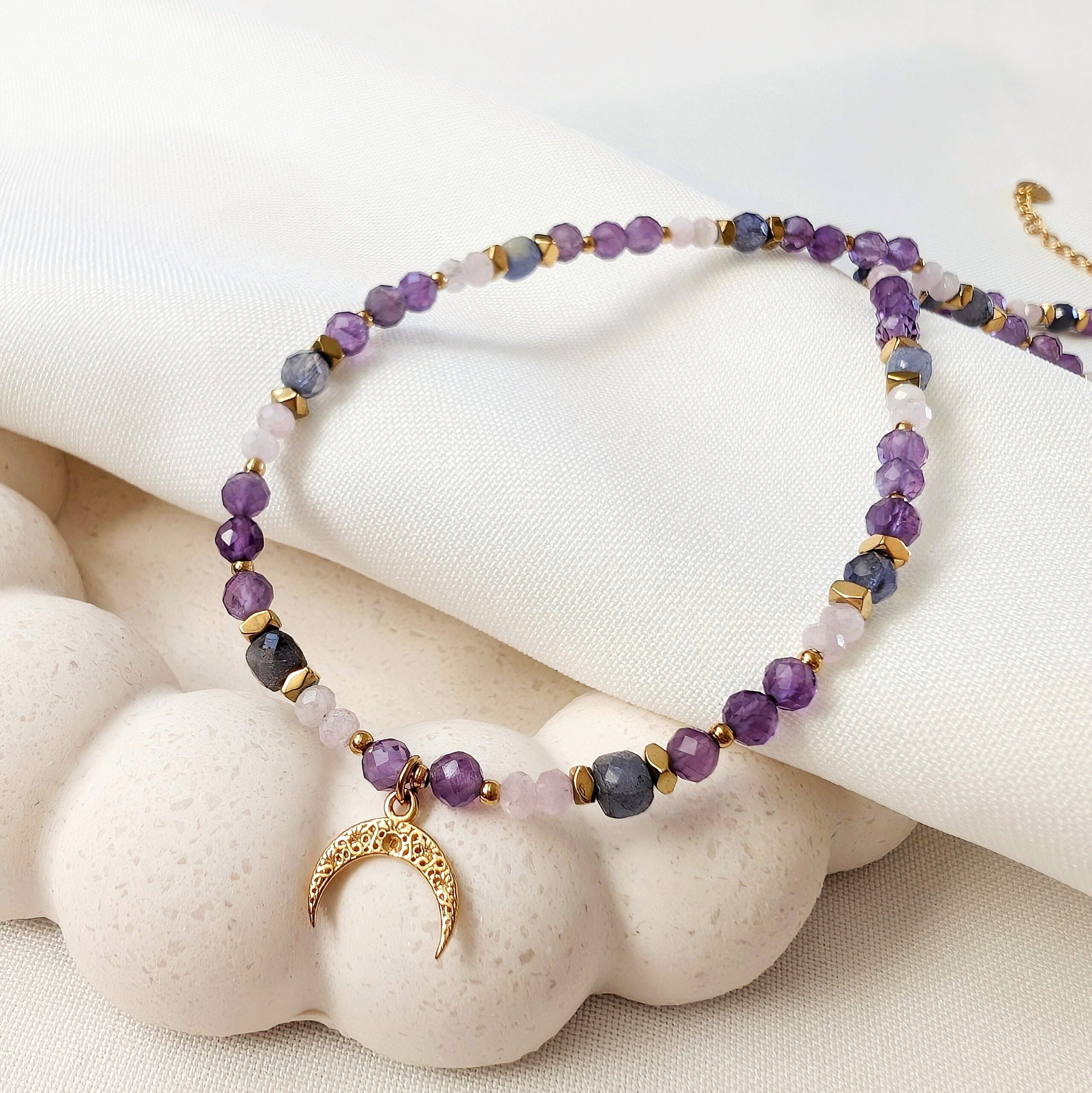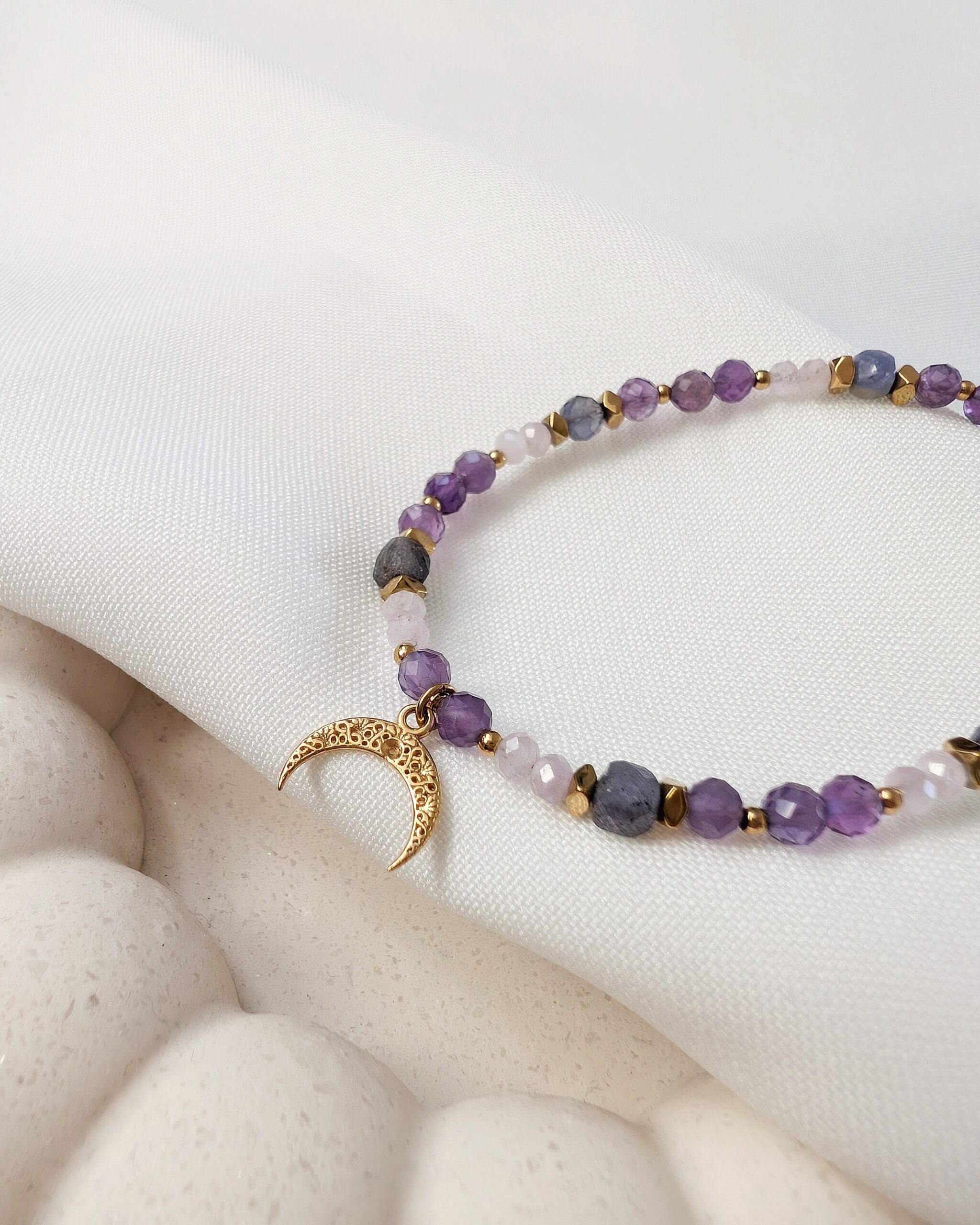 JASMINA to spójna, harmonijna kompozycja kamieni naturalnych, gdzie główną rolę gra ametyst.