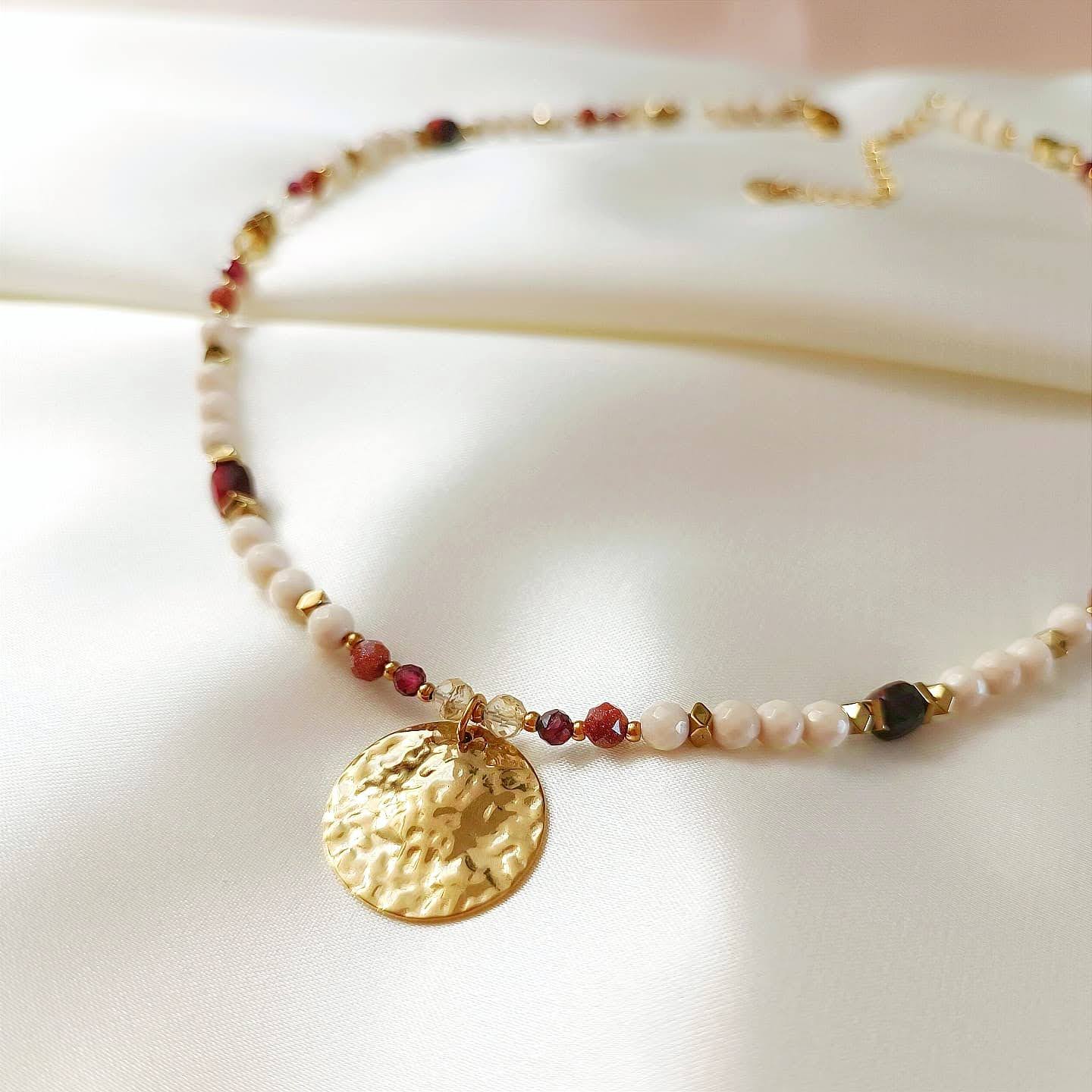Granat – symbol pasji, życiowej energii i wytrwałości. Pomaga w pokonywaniu przeszkód, dodaje odwagi i motywacji. Wspiera rozwój osobisty i wzmacnia poczucie własnej wartości.