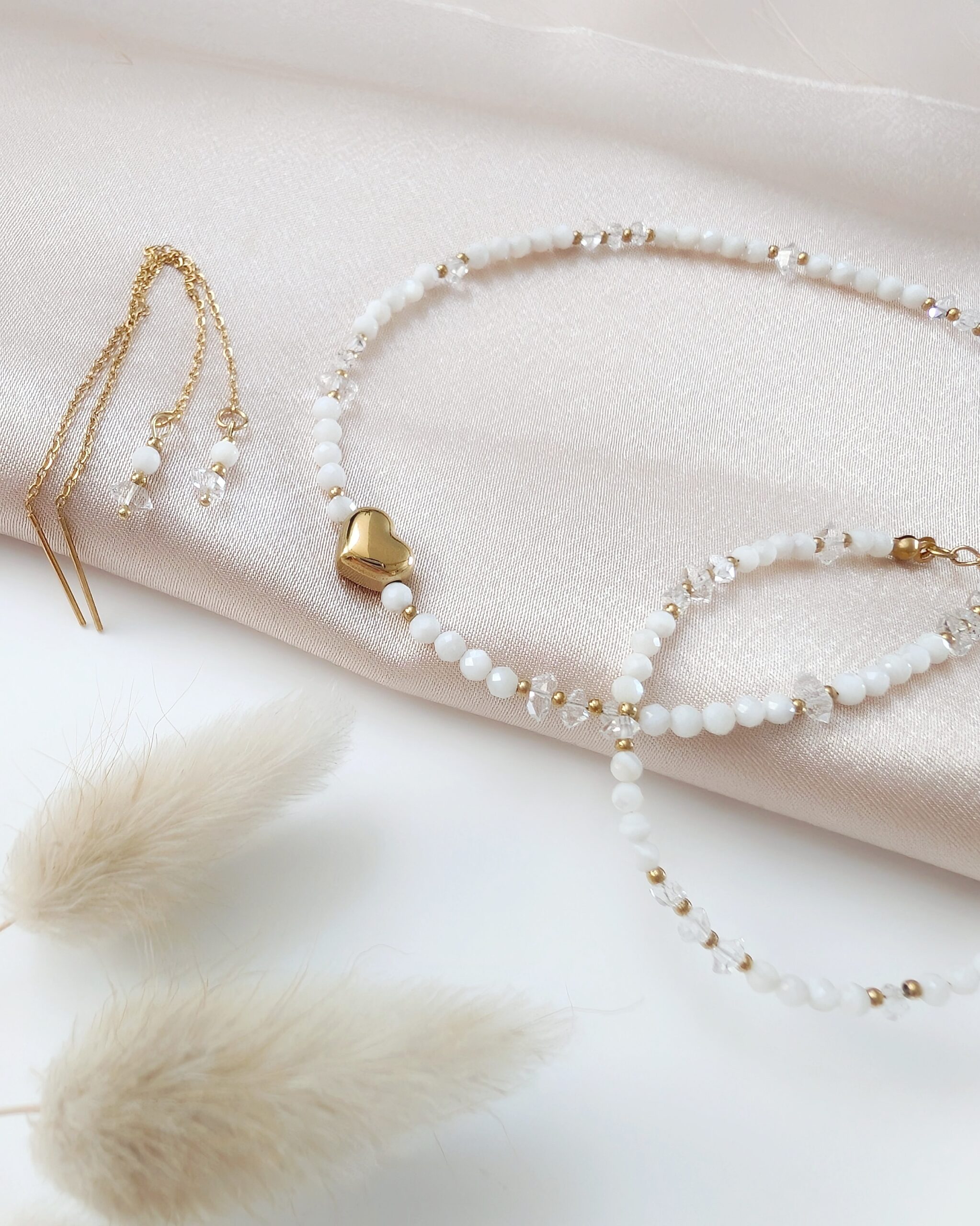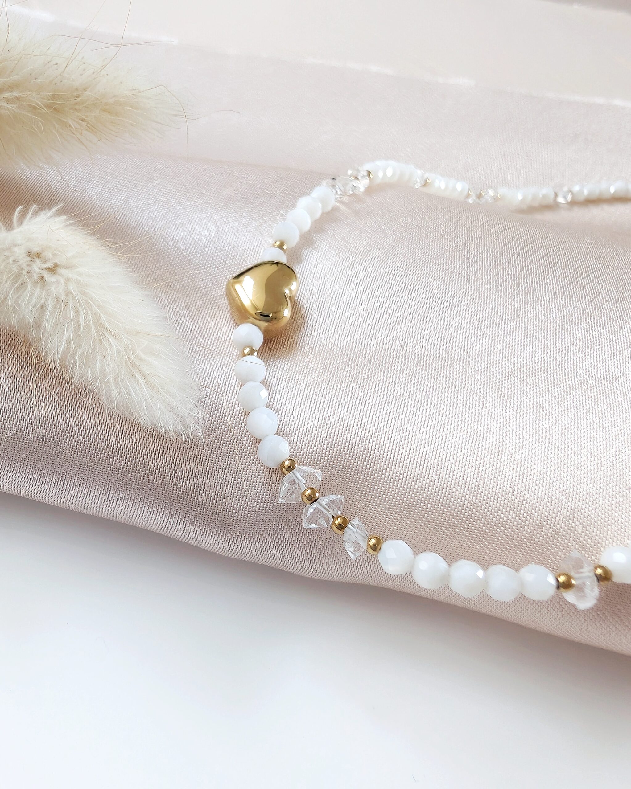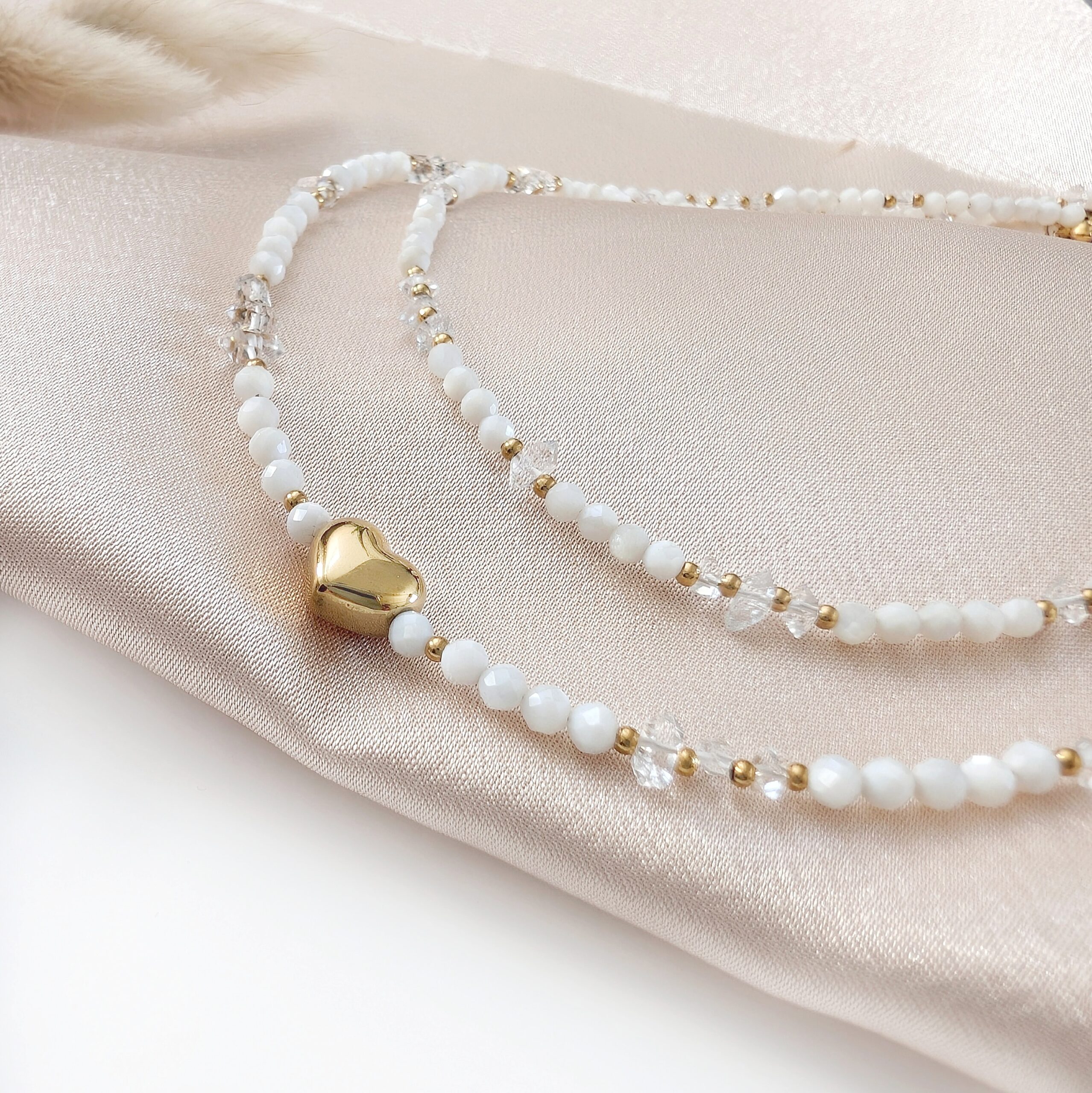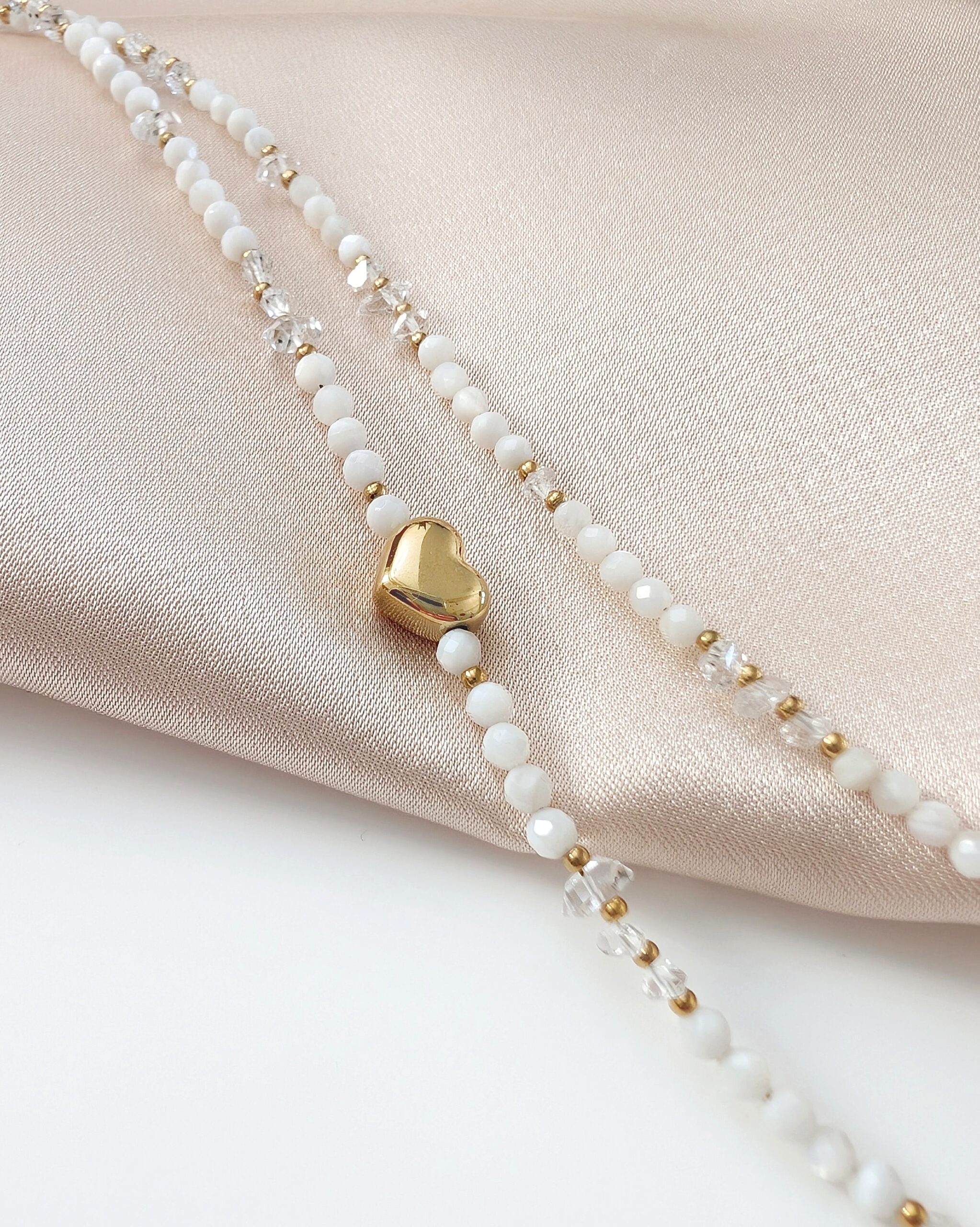 Naszyjnik dostępny w dwóch wariantach: ze złotym serduszkiem na środku lub bez (w miejscu serduszka znajduje się kryształ).