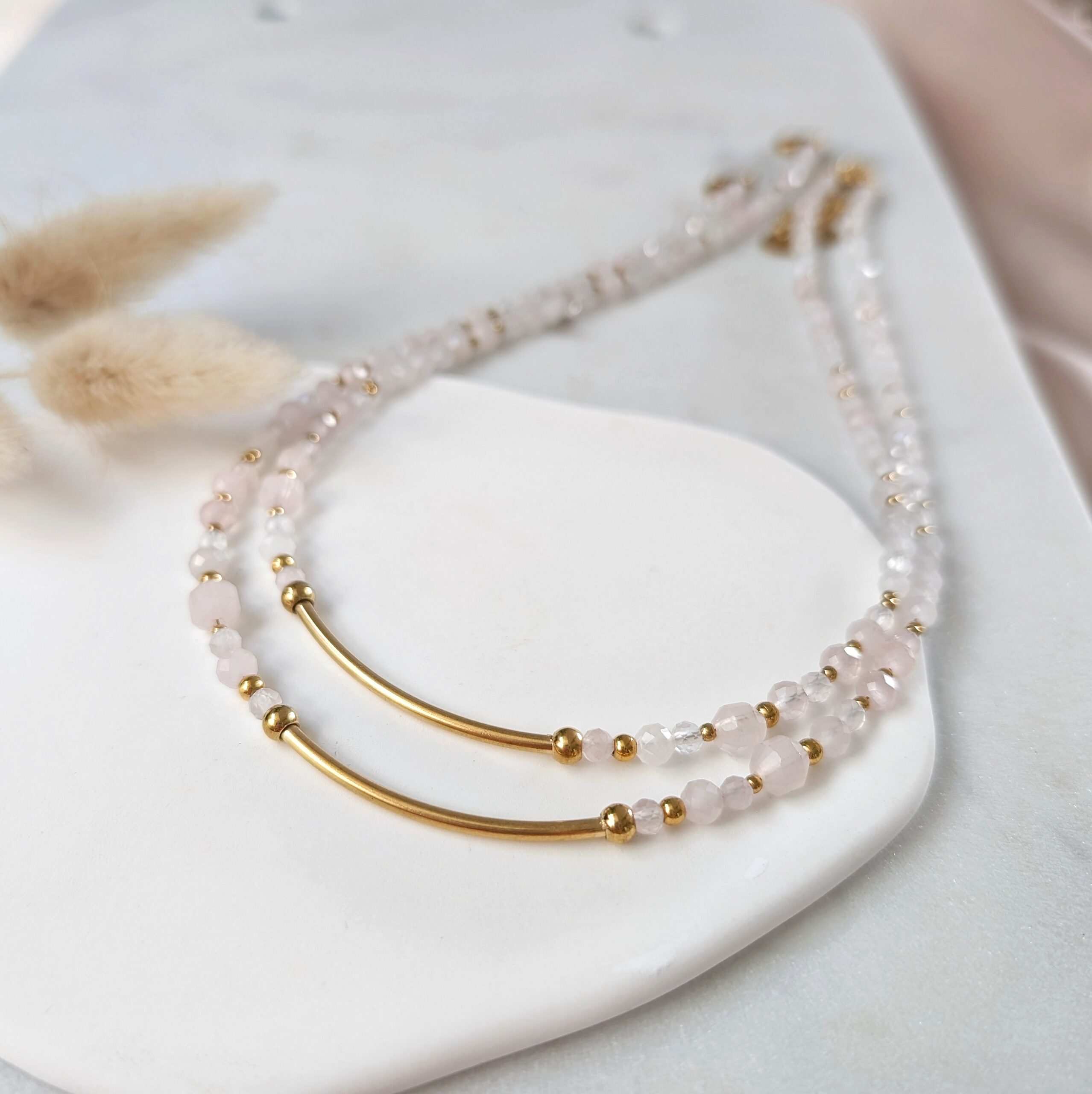 PURE LOVE to delikatna, subtelna i pełna miłości biżuteria z udziałem kwarcu różowego.