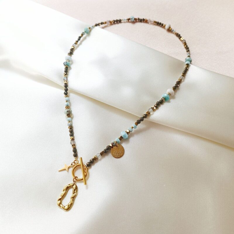 Naszyjnik ALISSA z pirytem i larimarem – luksus, harmonia i wewnętrzna siła