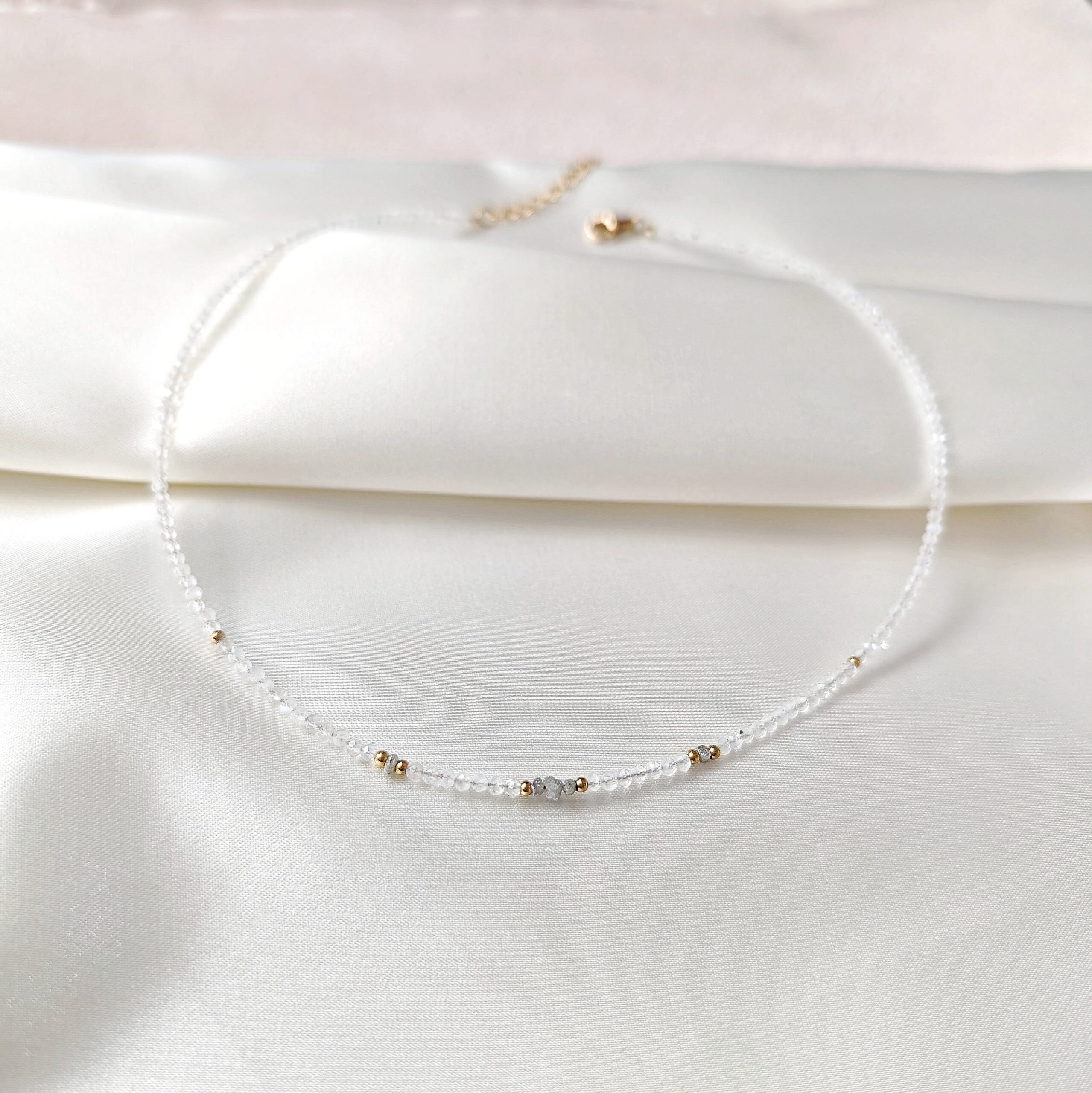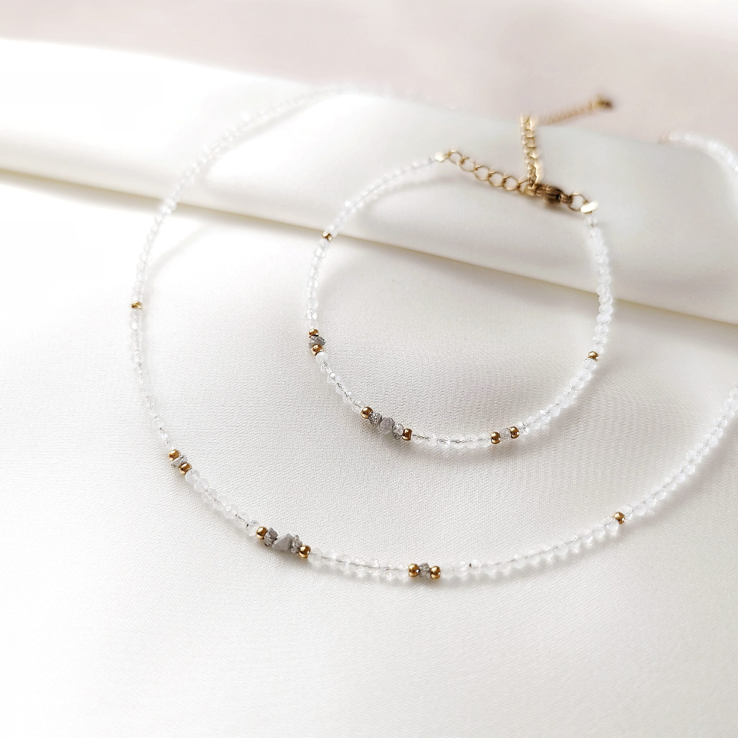 Co czyni je wyjątkowymi? To, co migocze pomiędzy półprzezroczystymi kamieniami – maleńkie, nieoszlifowane diamenty.