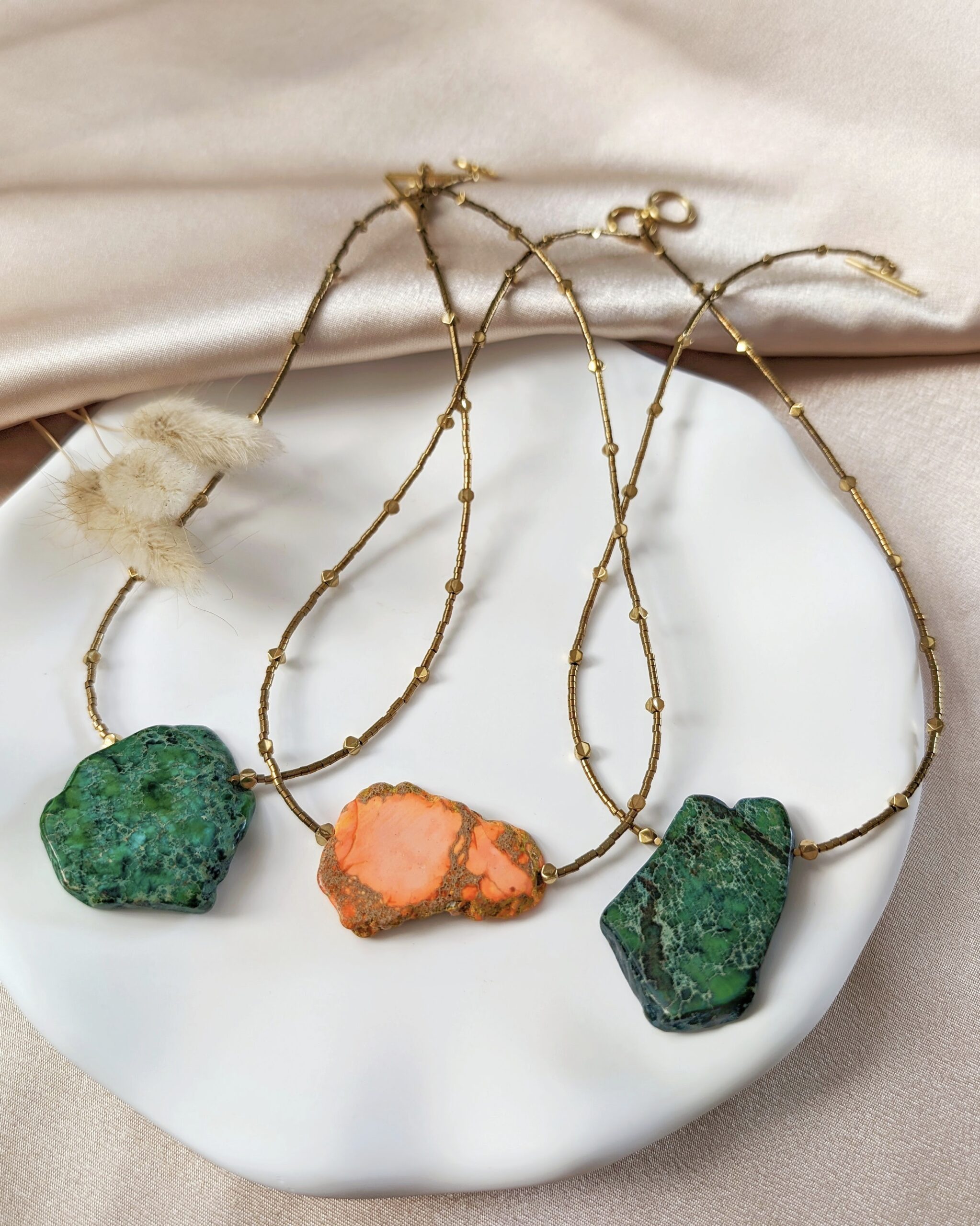 Sprawdź dostępność pozostałych naszyjników z plastrami jaspisu. Powstały tylko 3 unikatowe sztuki – każda z innym plastrem. Wyjątkowe i niepowtarzalne, mogą być również pięknym upominkiem.