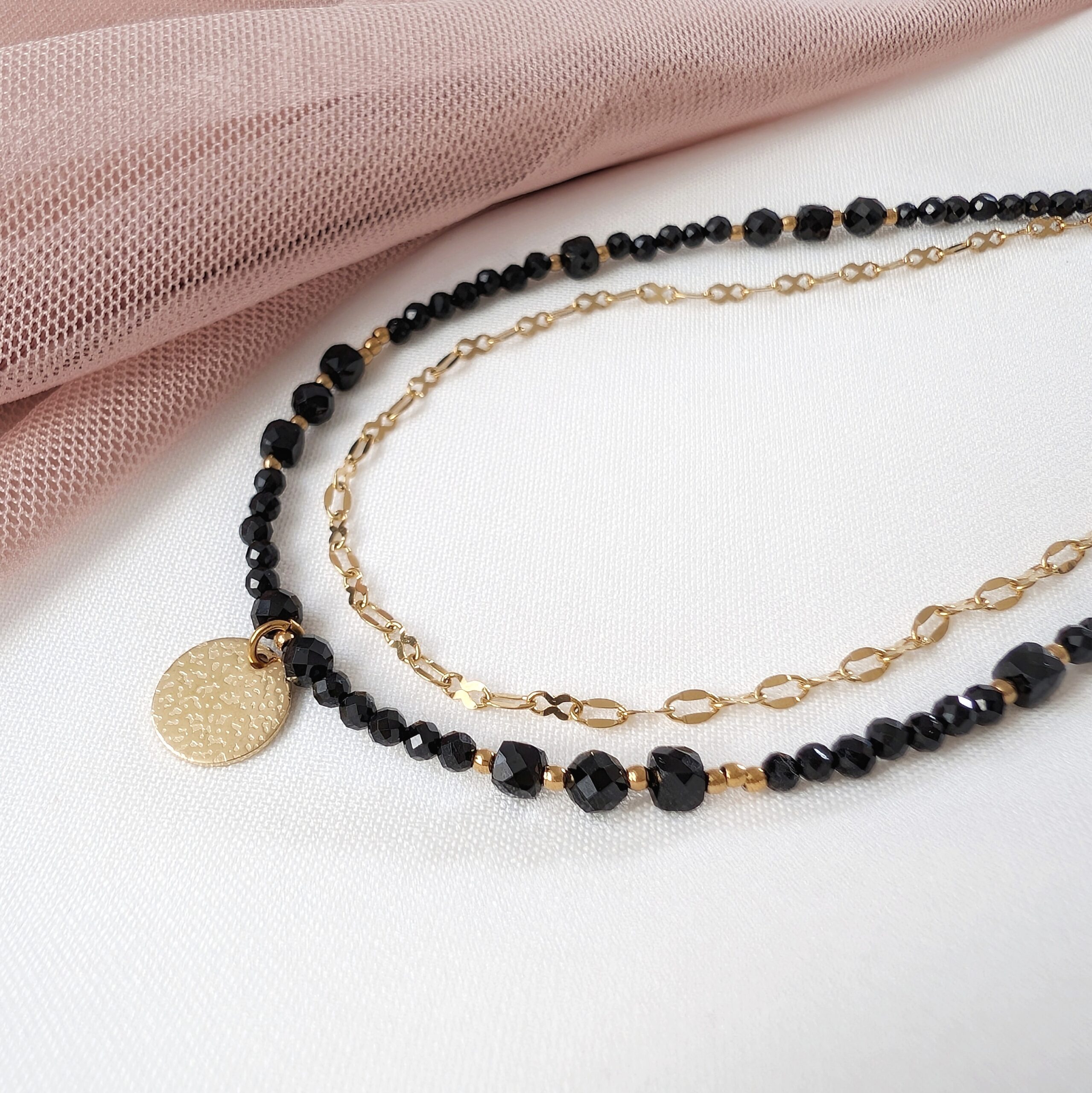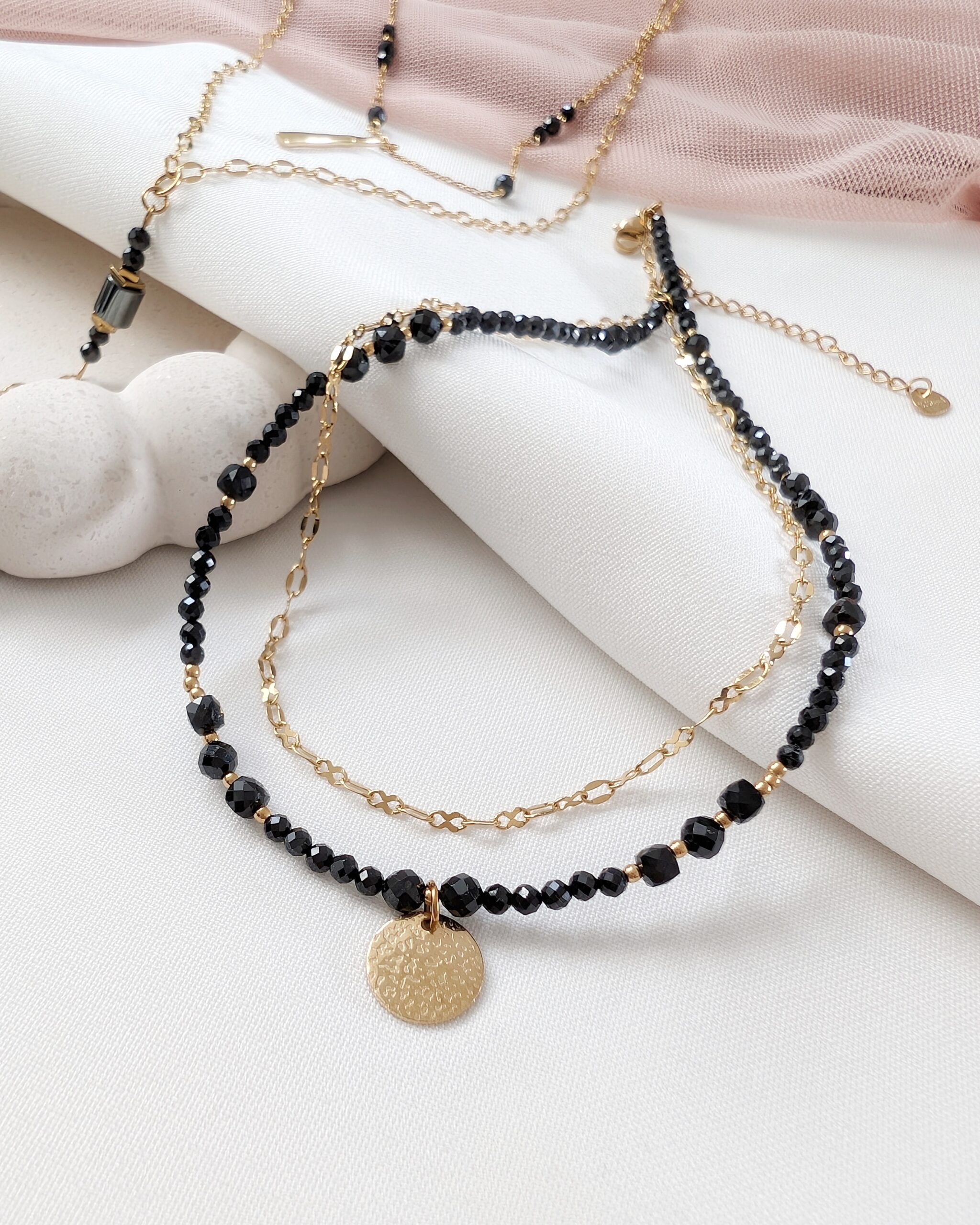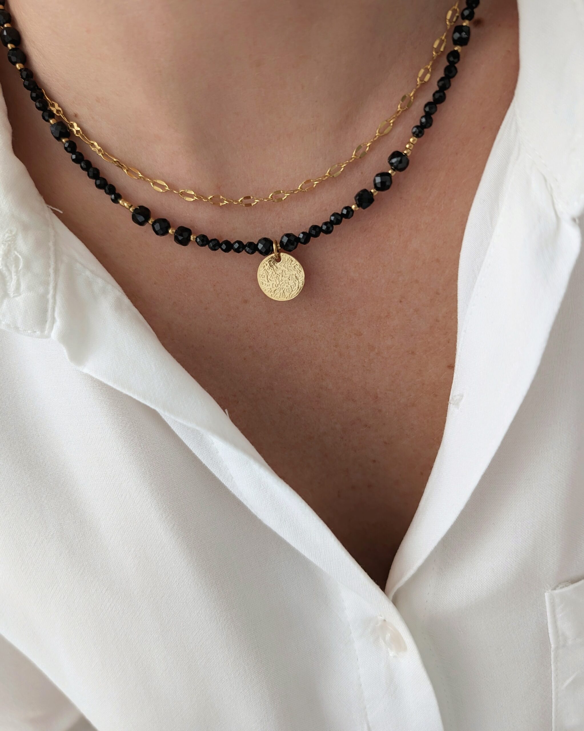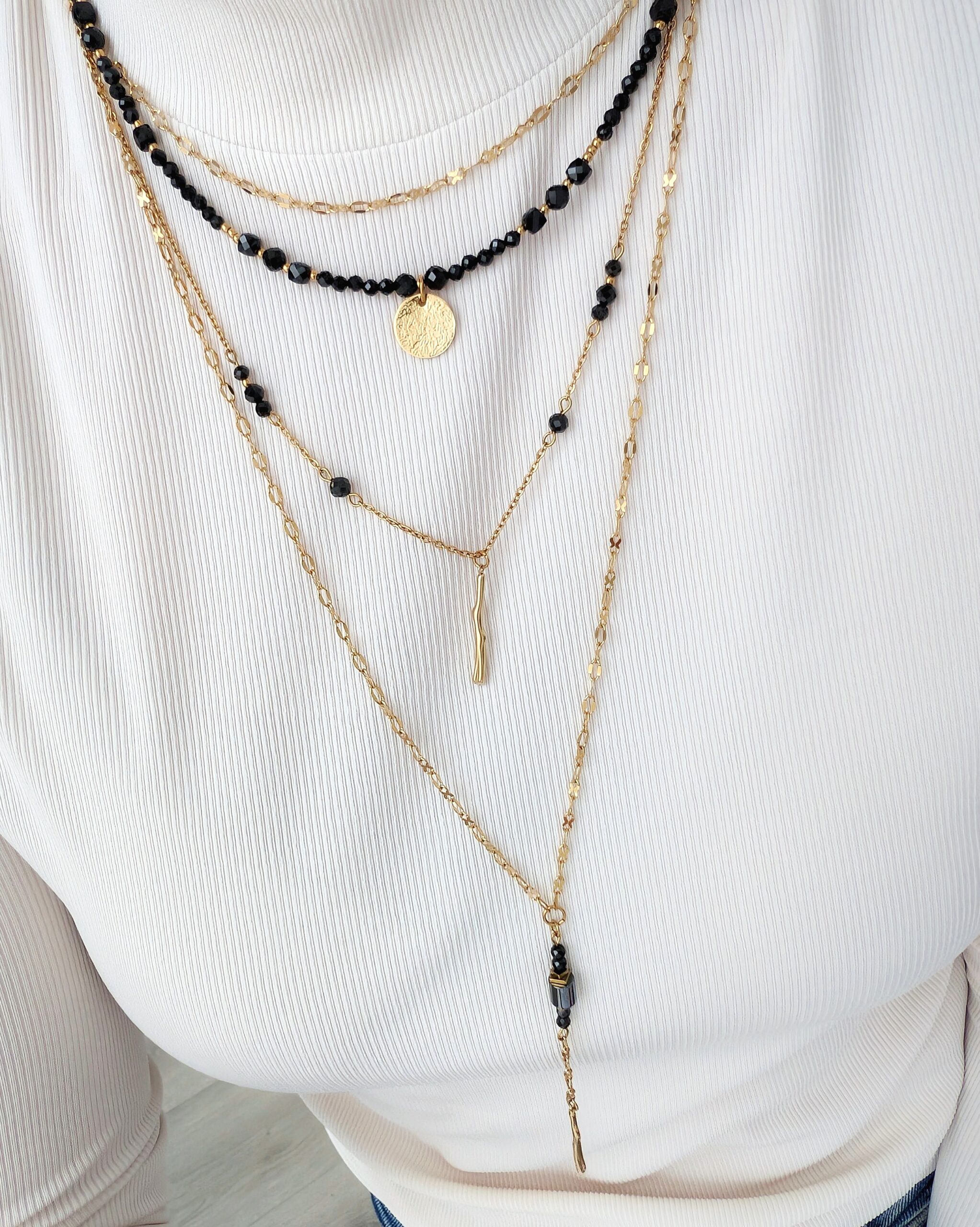 Idealny do kaskadowych zestawień z innymi naszyjnikami. Sprawdź dłuższy naszyjnik BLACK ESSENCE i stwórz 4-warstwową kompozycję!