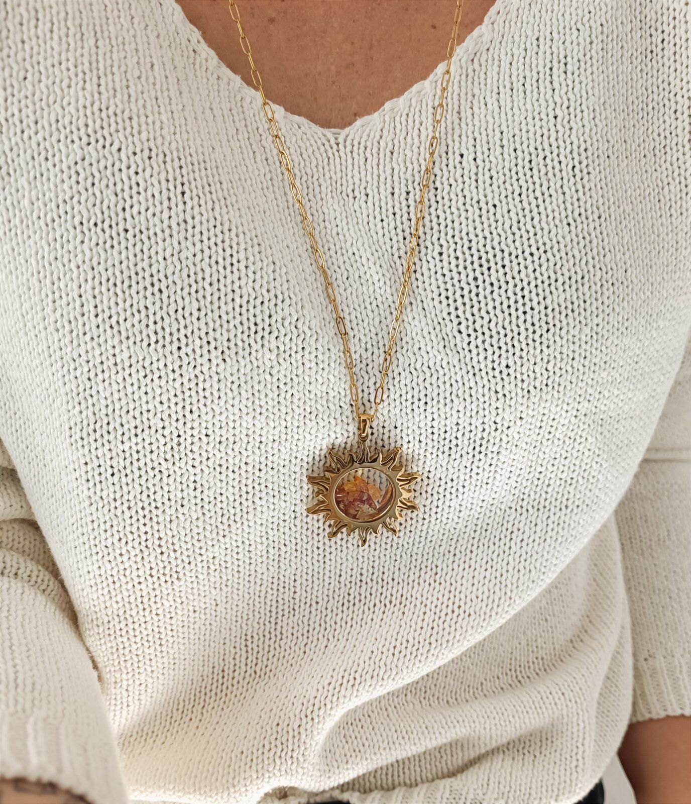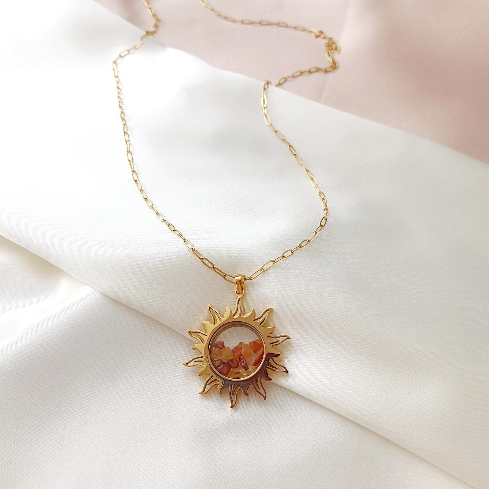 Ten wyjątkowy sekretnik w kształcie słońca to nie tylko biżuteria, ale także miejsce na Twoje najcenniejsze wspomnienia. Dzięki odkręcanej zawieszce możesz umieścić w nim osobiste drobiazgi, które mają dla Ciebie szczególne znaczenie – od symbolicznych przedmiotów po wybrane kamienie naturalne o unikalnej energii.