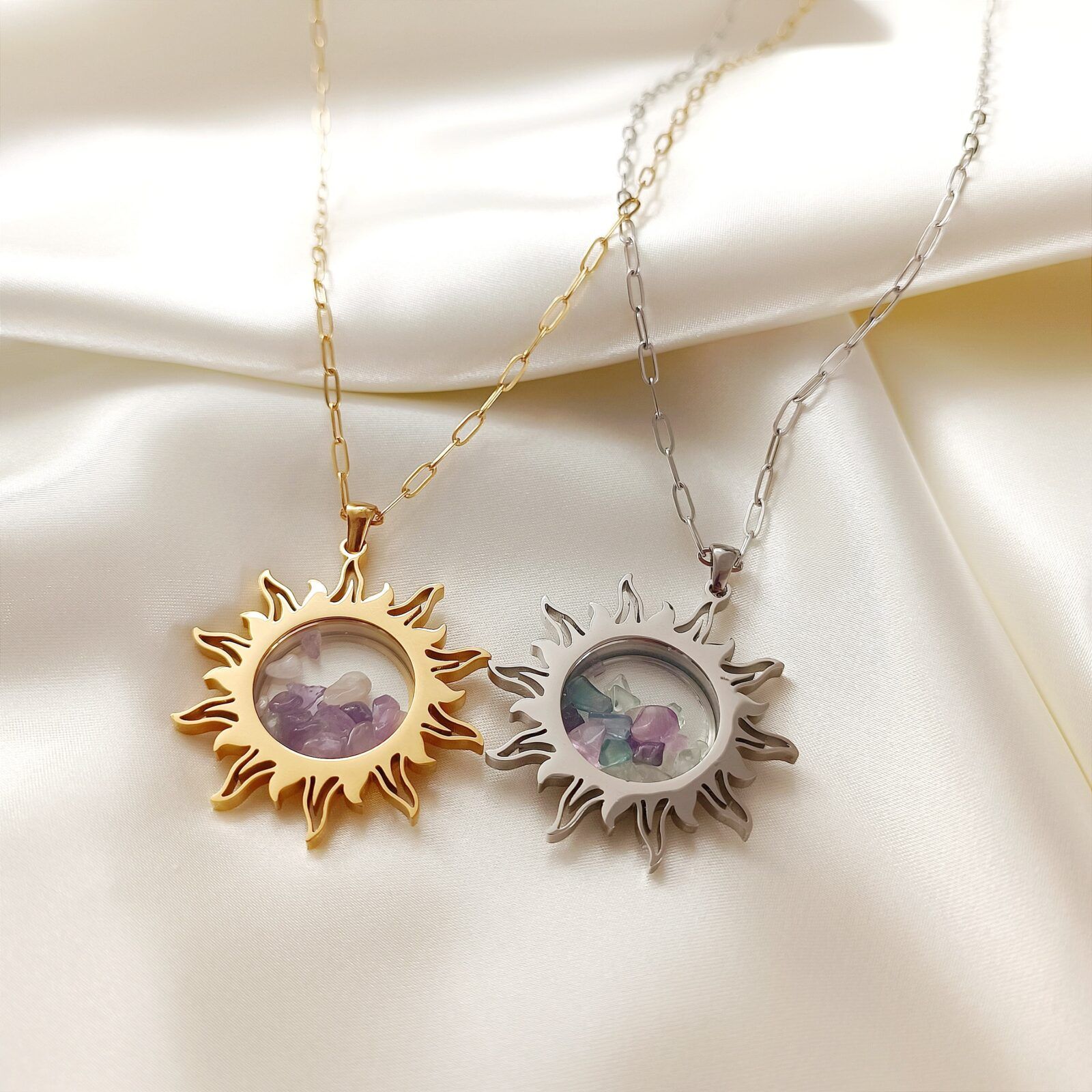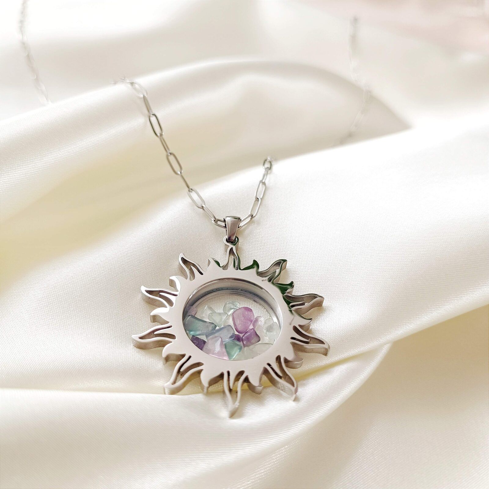 Ten wyjątkowy sekretnik w kształcie słońca to nie tylko biżuteria, ale także miejsce na Twoje najcenniejsze wspomnienia. Dzięki odkręcanej zawieszce możesz umieścić w nim osobiste drobiazgi, które mają dla Ciebie szczególne znaczenie – od symbolicznych przedmiotów po wybrane kamienie naturalne o unikalnej energii.