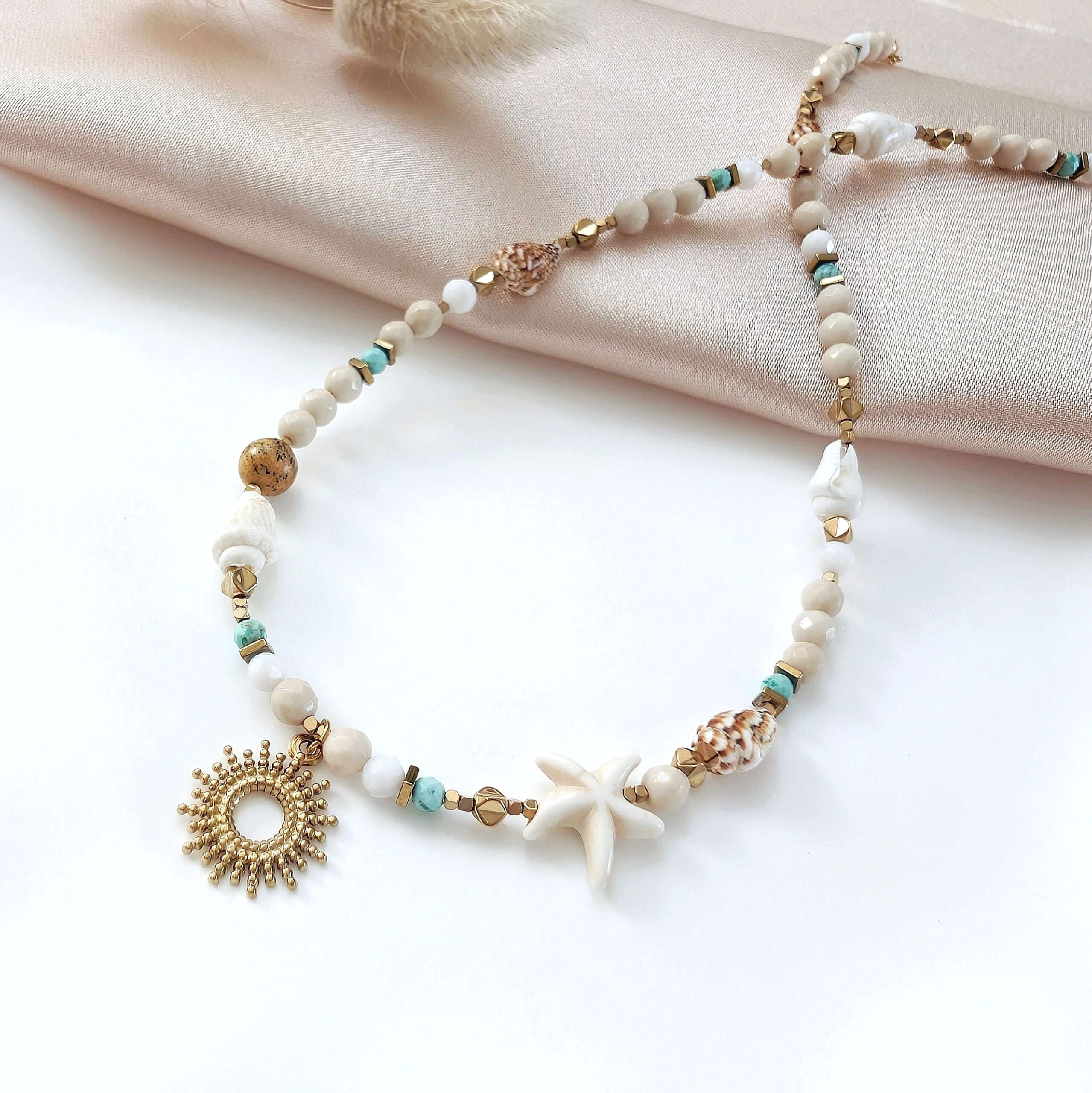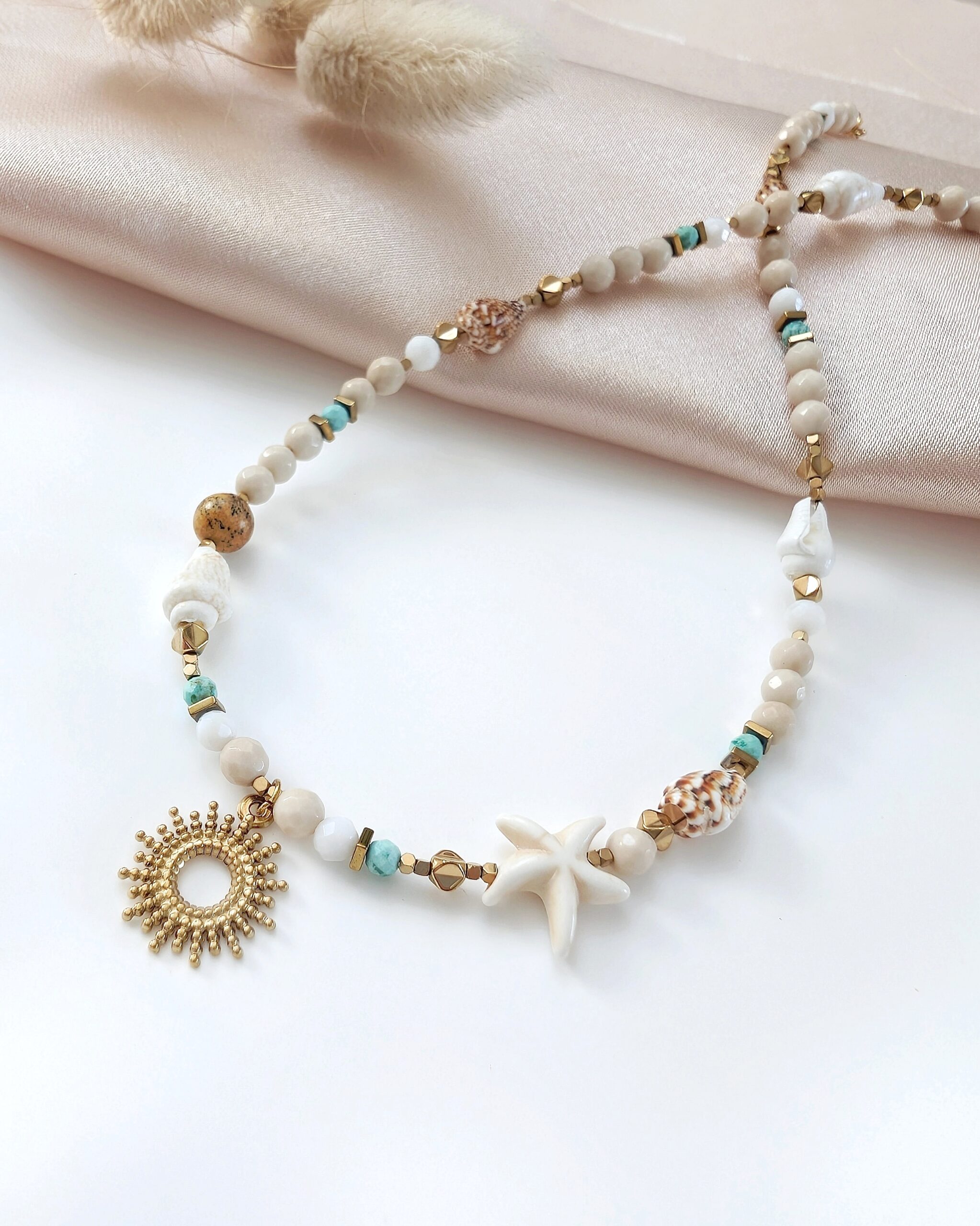 Naszyjnik BREEZE wykonany z kamieni naturalnych i wakacyjnych akcentów.